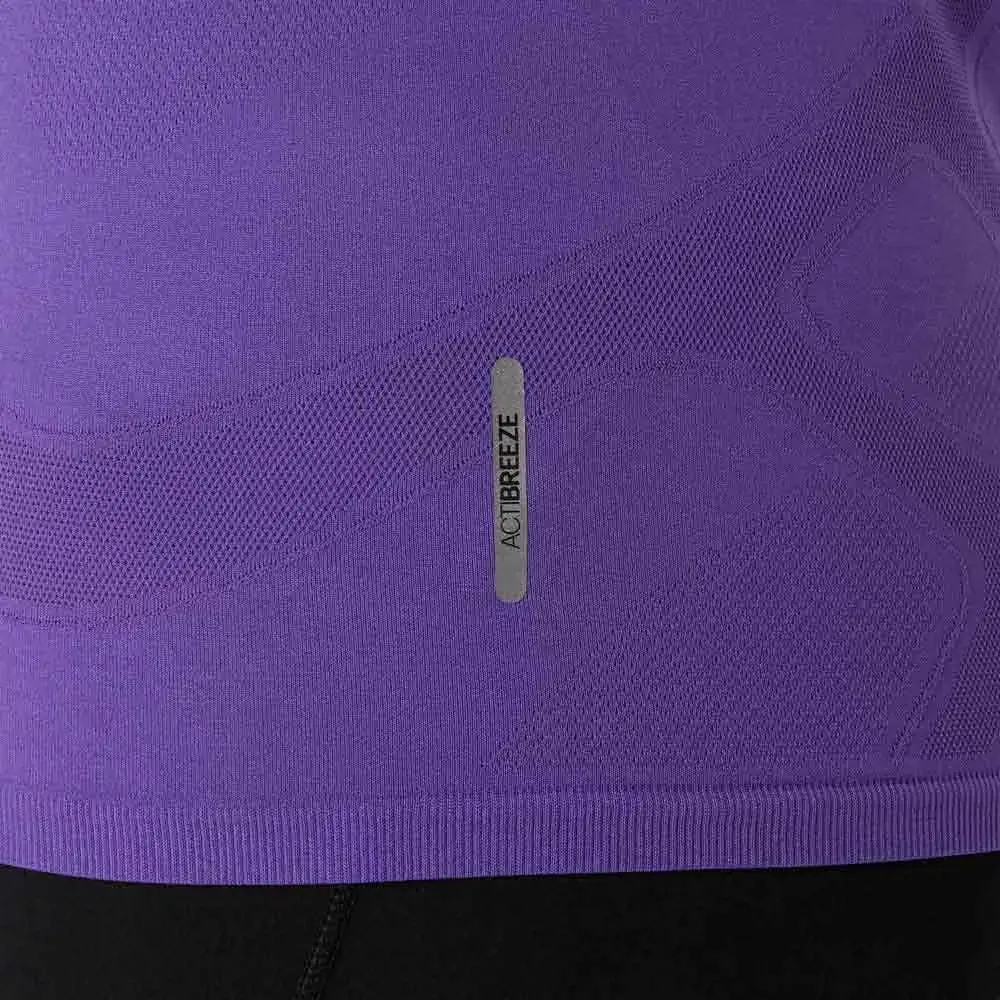 Этот топ оснащен технологией ACTIBREEZE со стратегически расположенными зонами вентиляции, повторяющими контуры тела, которые обеспечивают направленную вентиляцию, улучшенную воздухопроницаемость и комфорт. Он дополняется отверстиями для больших пальцев на рукавах для удобства во время ежедневных пробежек.