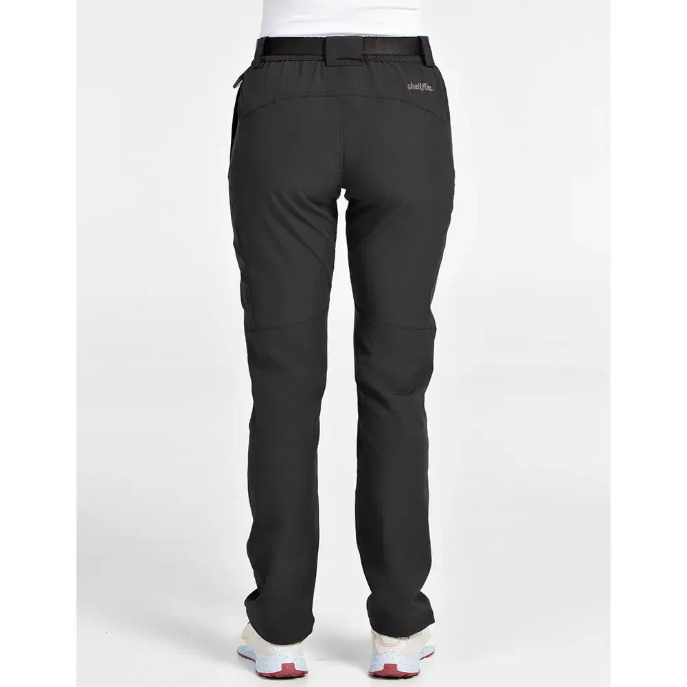 Женские треккинговые брюки из легкой, бистрейчевой ткани «shellflex», облегающего кроя, эластичный пояс с ремнем, многокарманная система, подходят для различных видов активного отдыха.