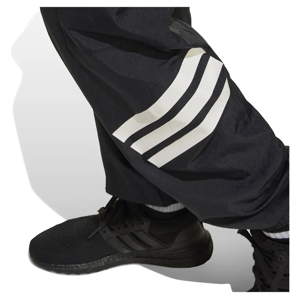 Изготовленные из тканого материала, они выделяются из толпы благодаря наклонным трем полоскам на штанинах.