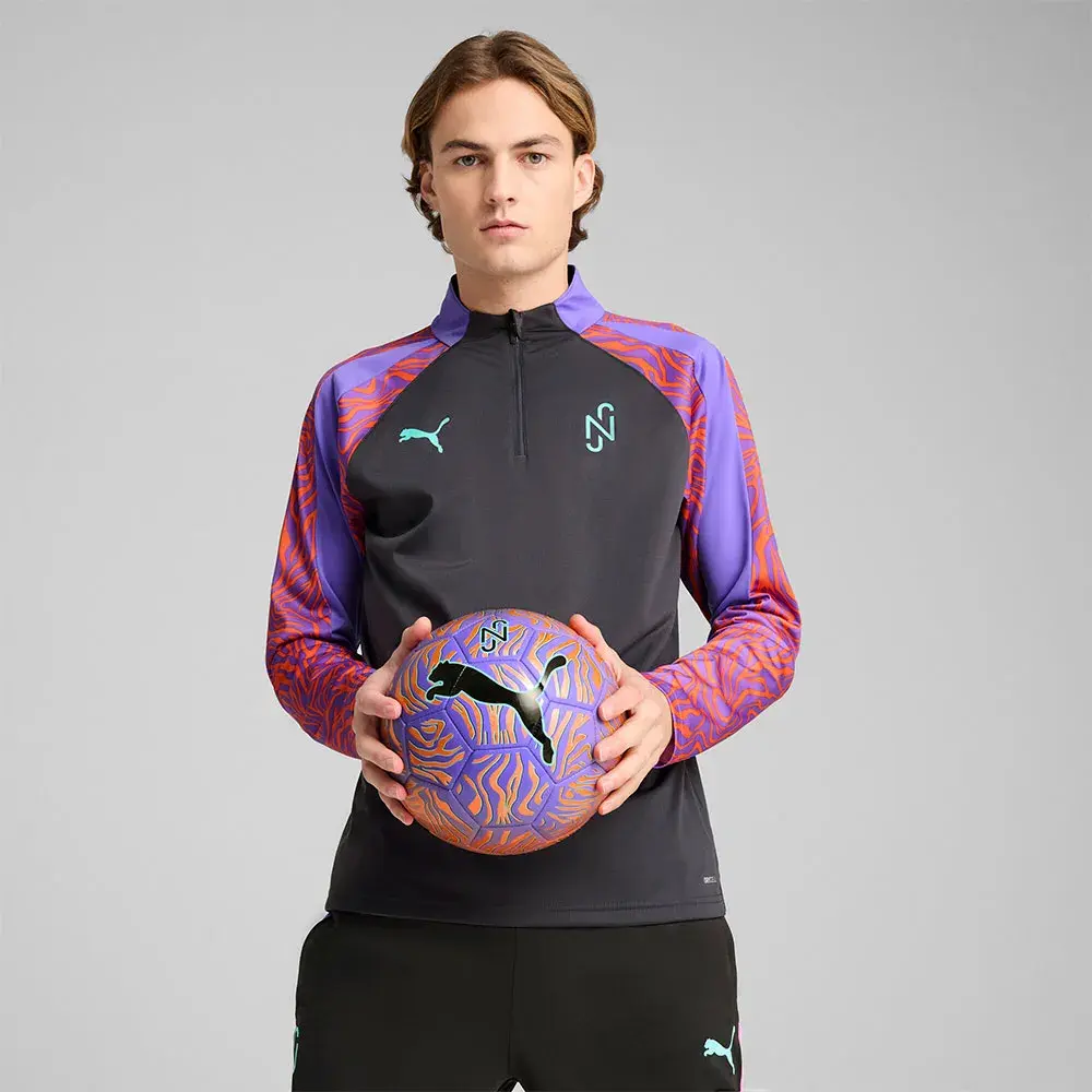 Этот топ прямого кроя с технологией dryCELL сохраняет свежесть, пока вы доминируете в игре, с принтом по всей поверхности рукавов, логотипами NJR и PUMA Cat и застежкой-молнией на четверть длины.