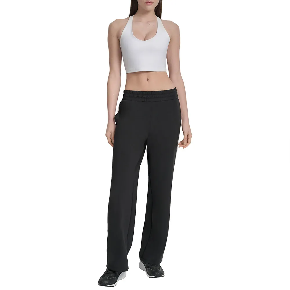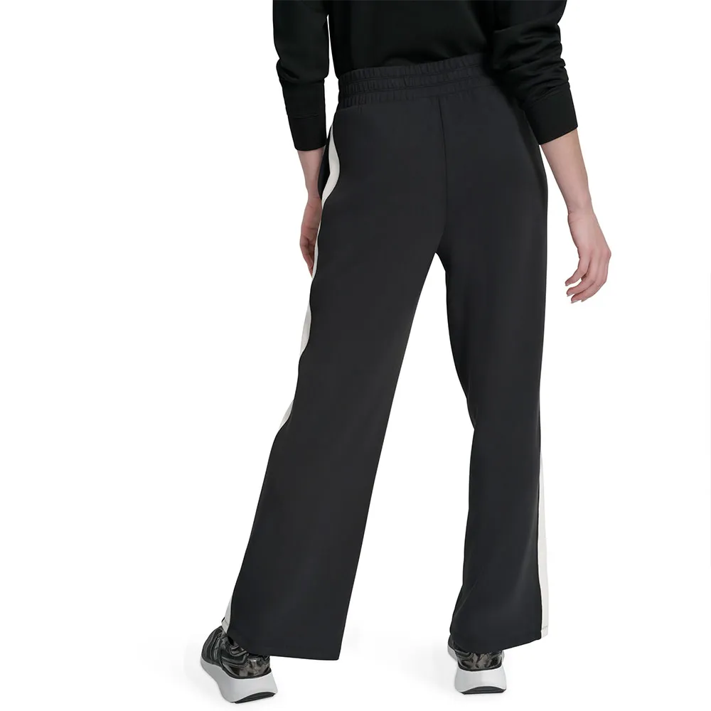 Спортивные брюки-кюлоты с широкими штанинами, высокой талией и цветными полосками по бокам.