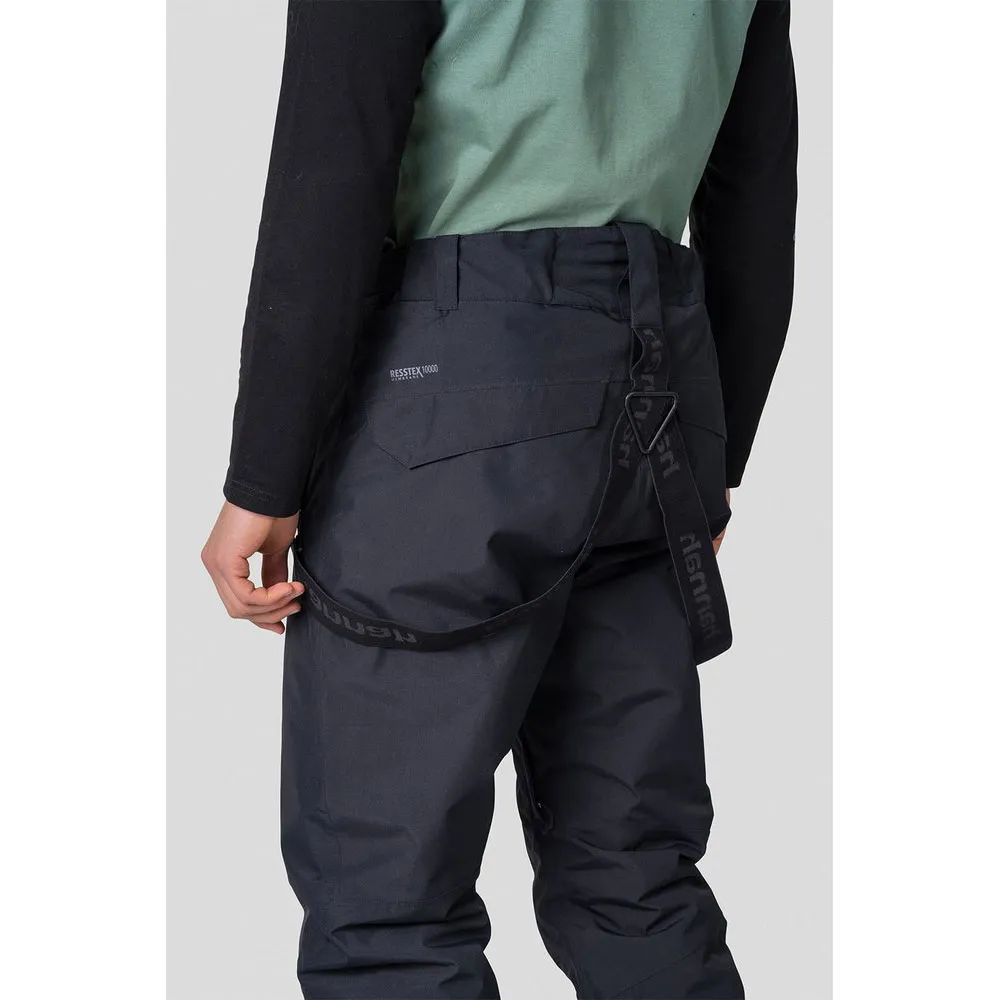 Формованные колени, высокая посадка, регулируемая талия на липучках, съемные подтяжки и снегозащитный манжет на щиколотках гарантируют максимальный комфорт на склоне.