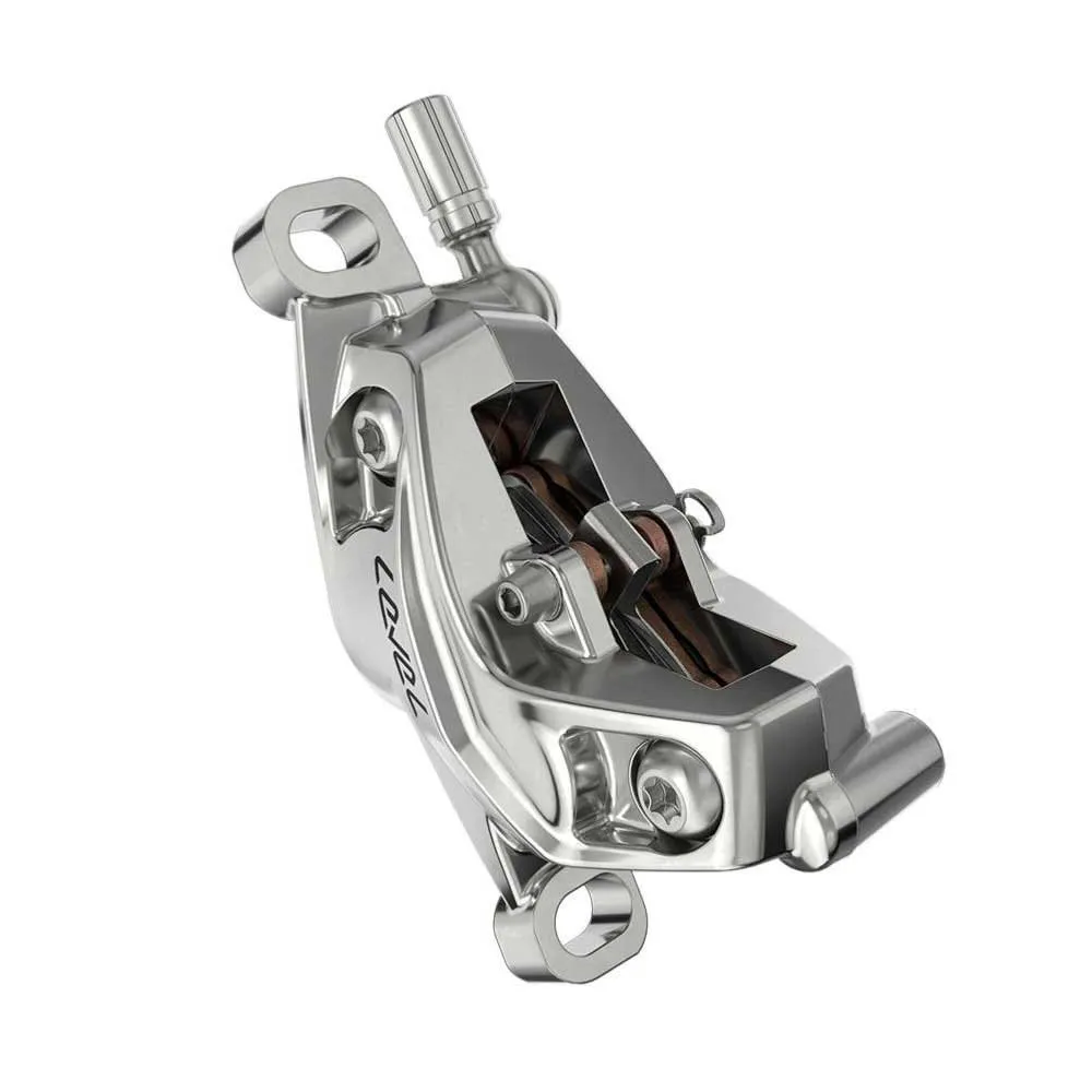 Гидравлический дисковый тормоз SRAM Level Ultimate Stealth, 4-поршневой передний, прозрачные анодированные органические колодки на стальной основе, жидкость DOT 5.1, шарнир рычага: подшипник, порт суппорта: Bleeding Edge, рекомендуемый ротор: цельный HS2.
