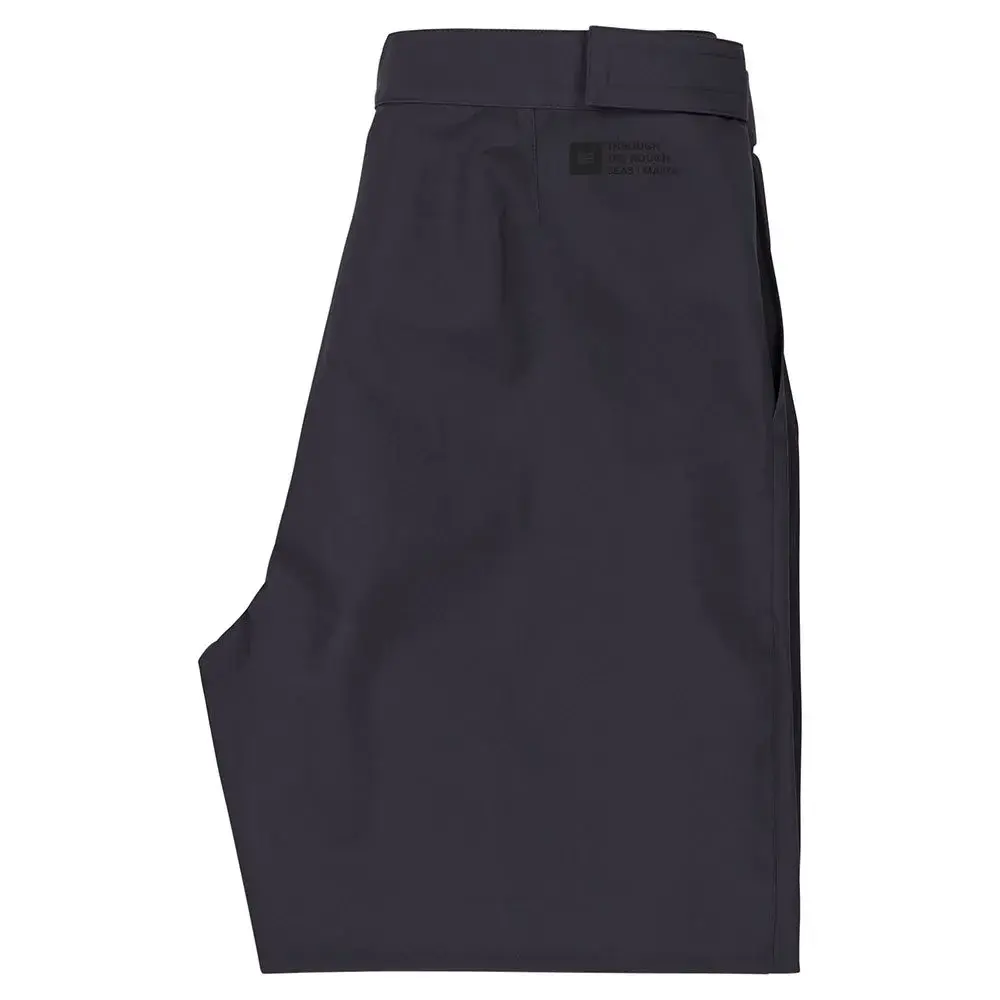 - Напечатанный логотип MAKIA на спине, логотип-флажок на штанине и принт «Through the rough seas» на задней стороне под поясом