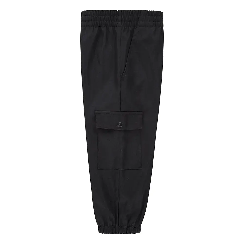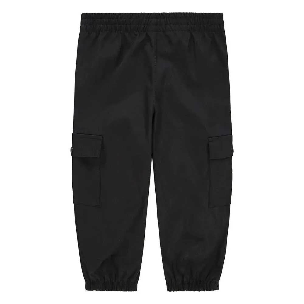 Эти брюки-карго классического джоггерского силуэта выполнены из жатой полиэстеровой саржи. Эластичный пояс обеспечивает комфорт, просторные карманы-карго с клапанами на кнопках позволяют надежно зафиксировать мелкие предметы, а зауженные брючины с эластичными манжетами обеспечивают удобную и надежную посадку. Дети могут играть в сырую погоду, так как водоотталкивающая пропитка защищает их от небольшого дождя.