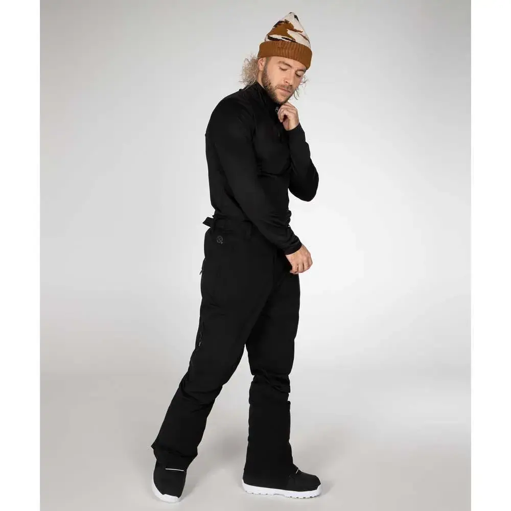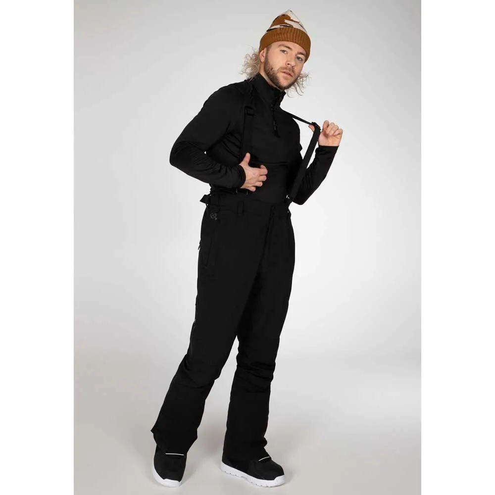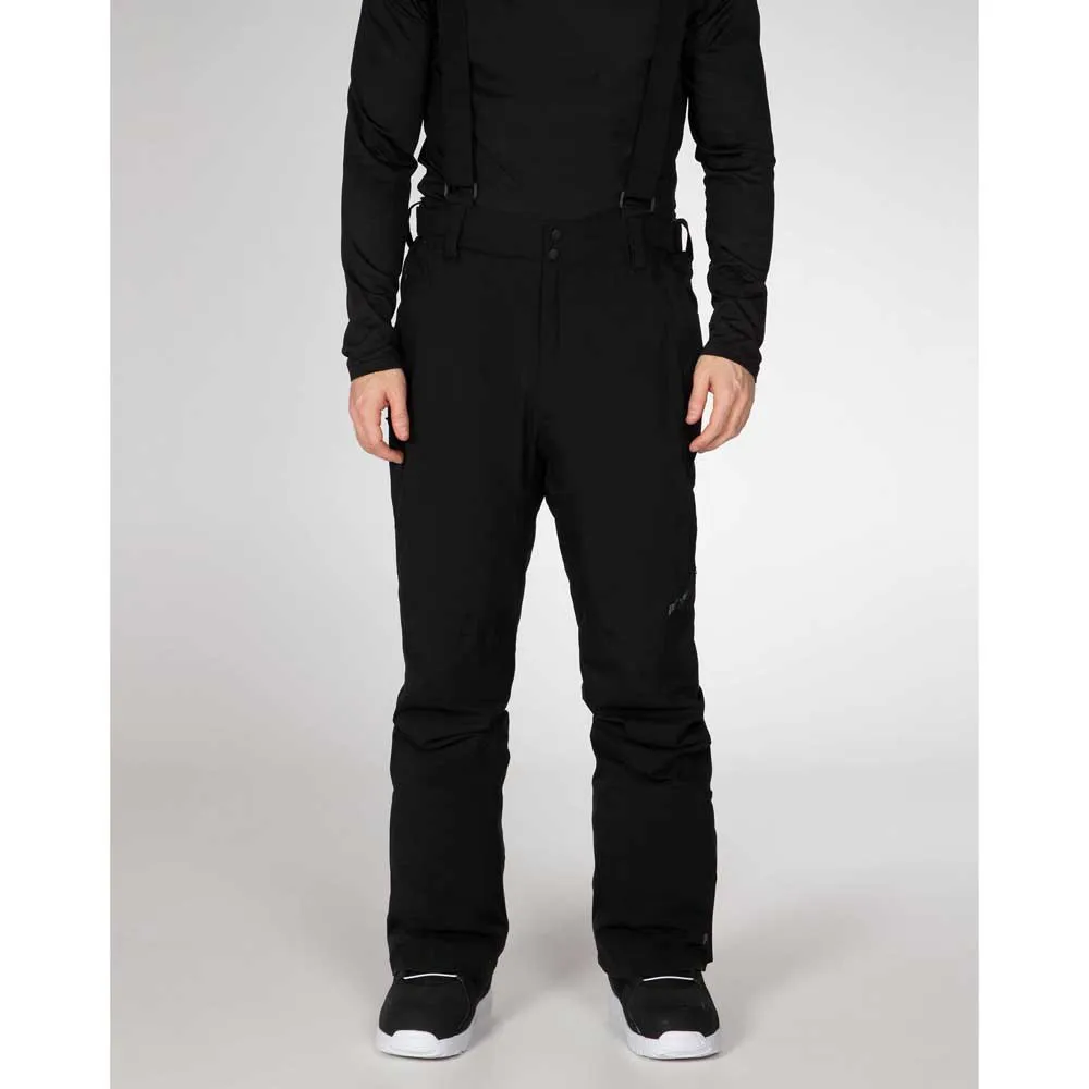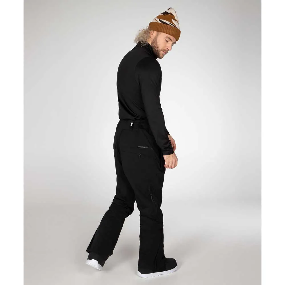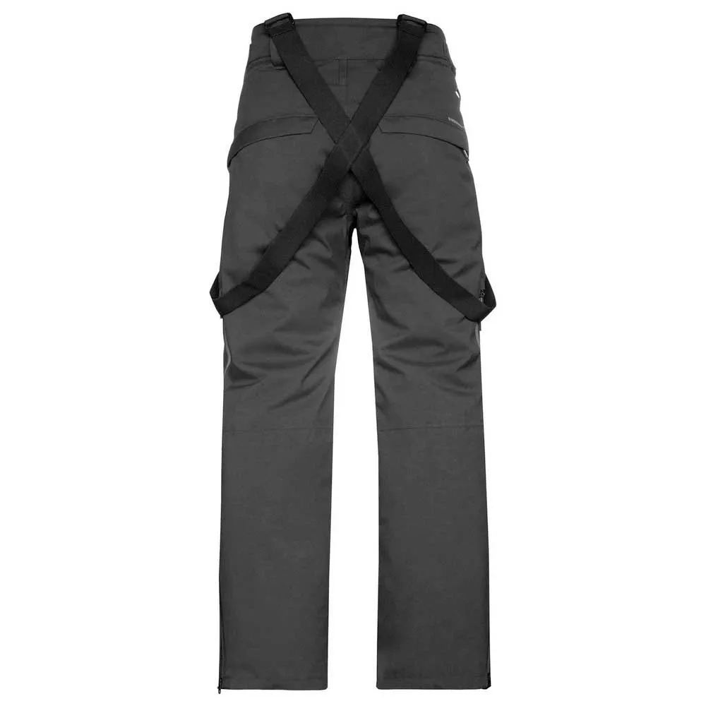 Прочный пояс с застежкой на кнопки, нейлоновая молния в боковых карманах, контрастные цветные герметичные бегунки и молнии для вентиляции по бокам штанины, нейлоновая молния за клапаном кармана сзади, регулируемая талия на липучке, прошитые сверху вытачки на предварительно сформированных коленях, закругленный изогнутый низ, молния в нижней части штанин, съемные эластичные лямки, предварительно сформированные штанины.