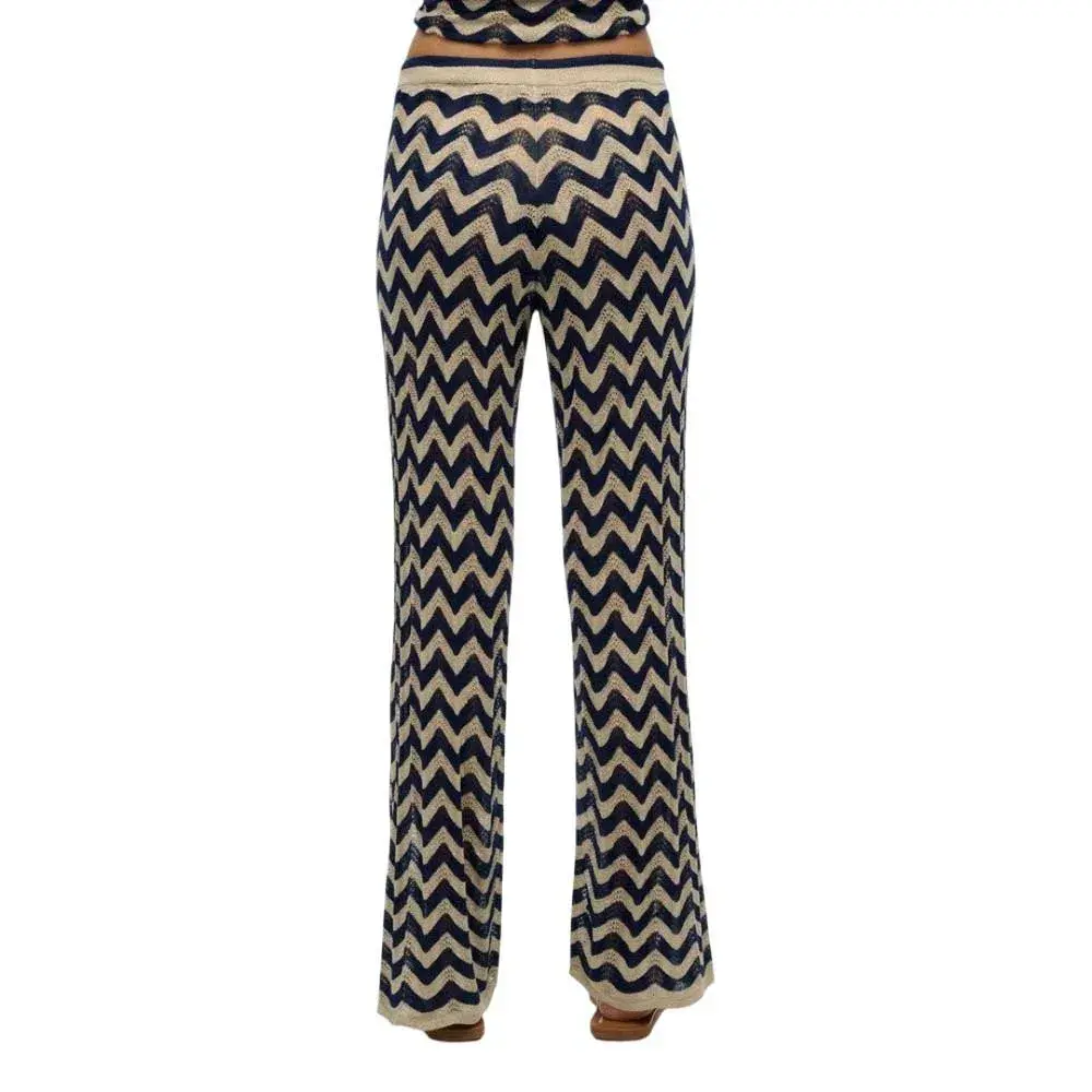 Главная отличительная черта этих брюк — динамичный зигзагообразный узор по всей поверхности. Этот сложный вязаный рисунок создает пленительную визуальную текстуру, которая добавляет глубину и индивидуальность вашему образу, делая эти брюки бесспорным центральным элементом. Смелый, но изысканный рисунок позволяет создавать универсальные стили, гарантируя, что вы произведете незабываемое впечатление, будь то на бранче в выходные, поездка в город или расслабленное вечернее мероприятие.