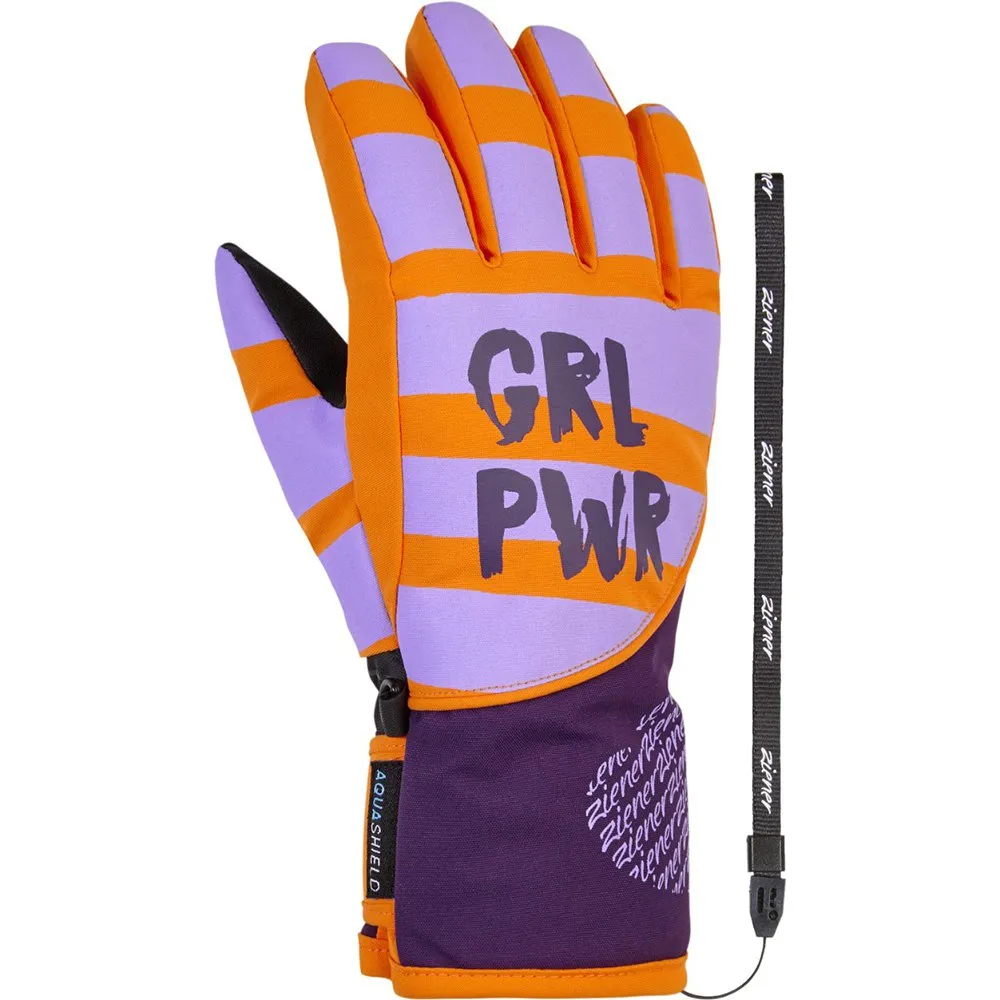Тёплые и модные горнолыжные перчатки ZIENER LIWA AS PR GIRLS для девочек оснащены тёплой и мягкой подкладкой PrimaLoft. Водонепроницаемая и ветрозащитная мембрана AQUASHIELD обеспечивает тёплый и сухой климат. Принт на ладонях обеспечивает оптимальное сцепление с лыжными палками. Широкие ремешки на липучках позволяют носить перчатки под рукавами куртки. Перчатки фиксируются на запястьях с помощью Z-образных ремешков. Модный полосатый дизайн с крутой надписью — это дополнительная порция GIRL POWER! Изделие содержит переработанный материал — для ресурсосберегающего подхода к защите окружающей среды.