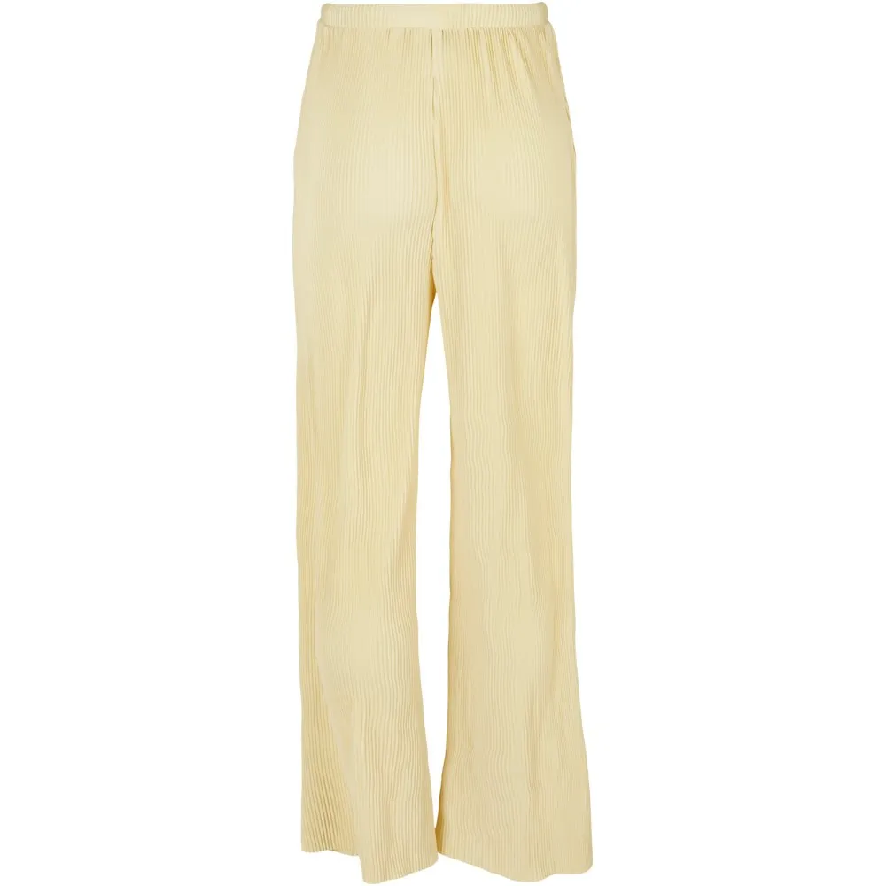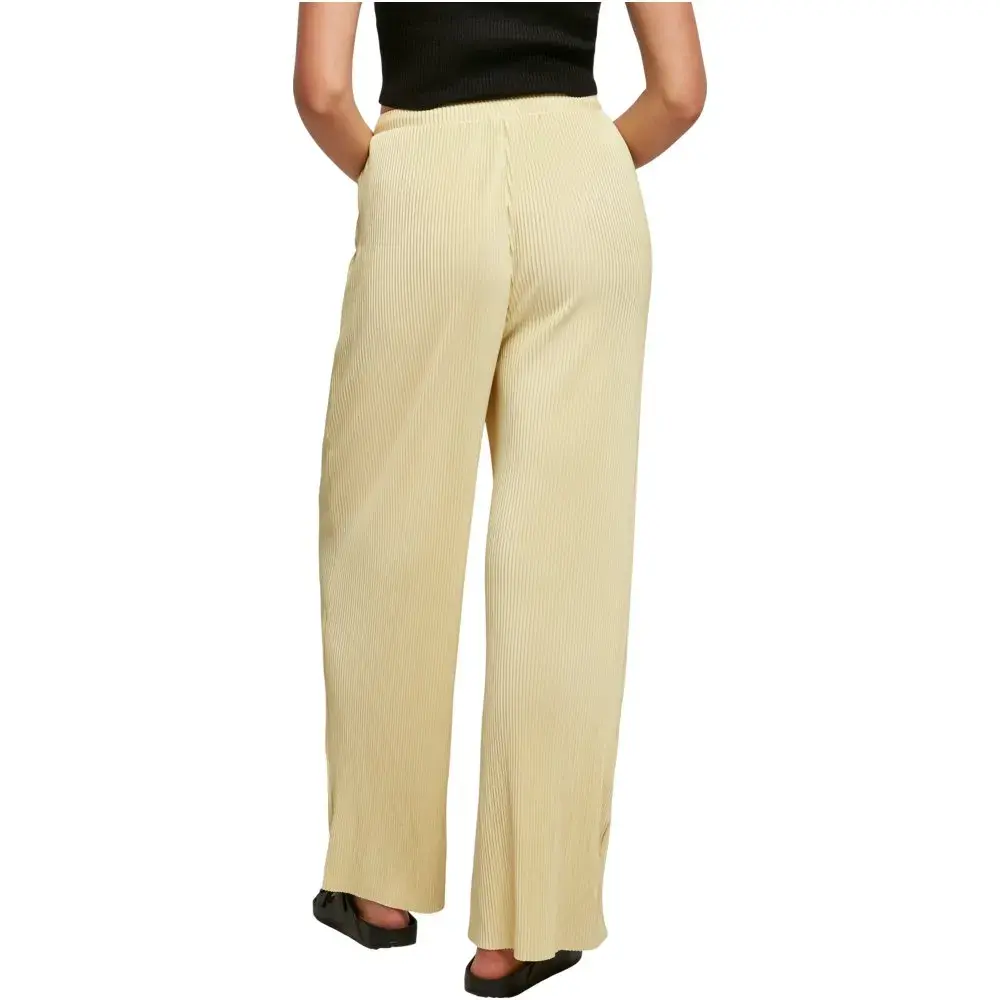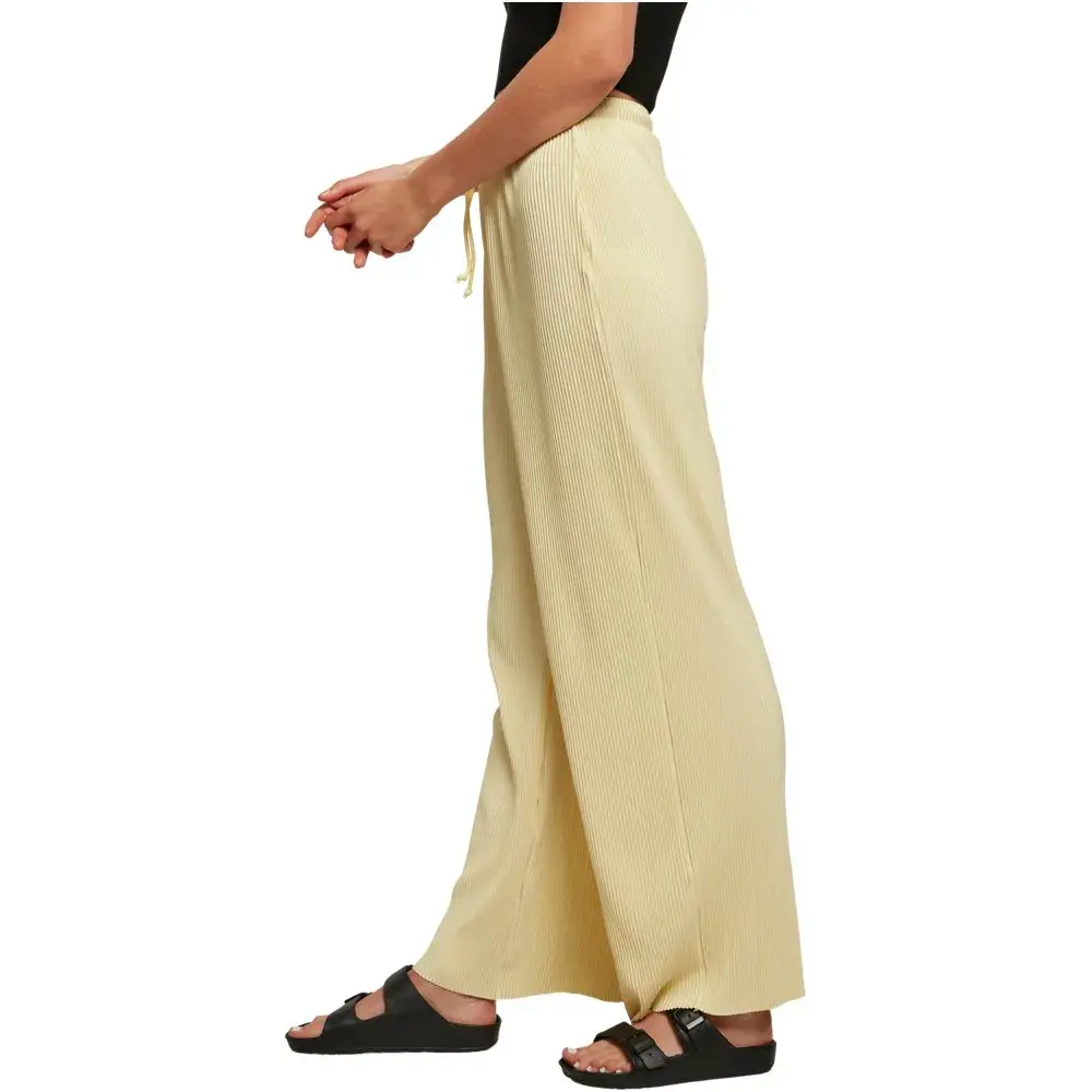 Плиссированные брюки удобно сидят на талии благодаря высокому эластичному поясу и легко регулируются с помощью удлиненных шнурков.