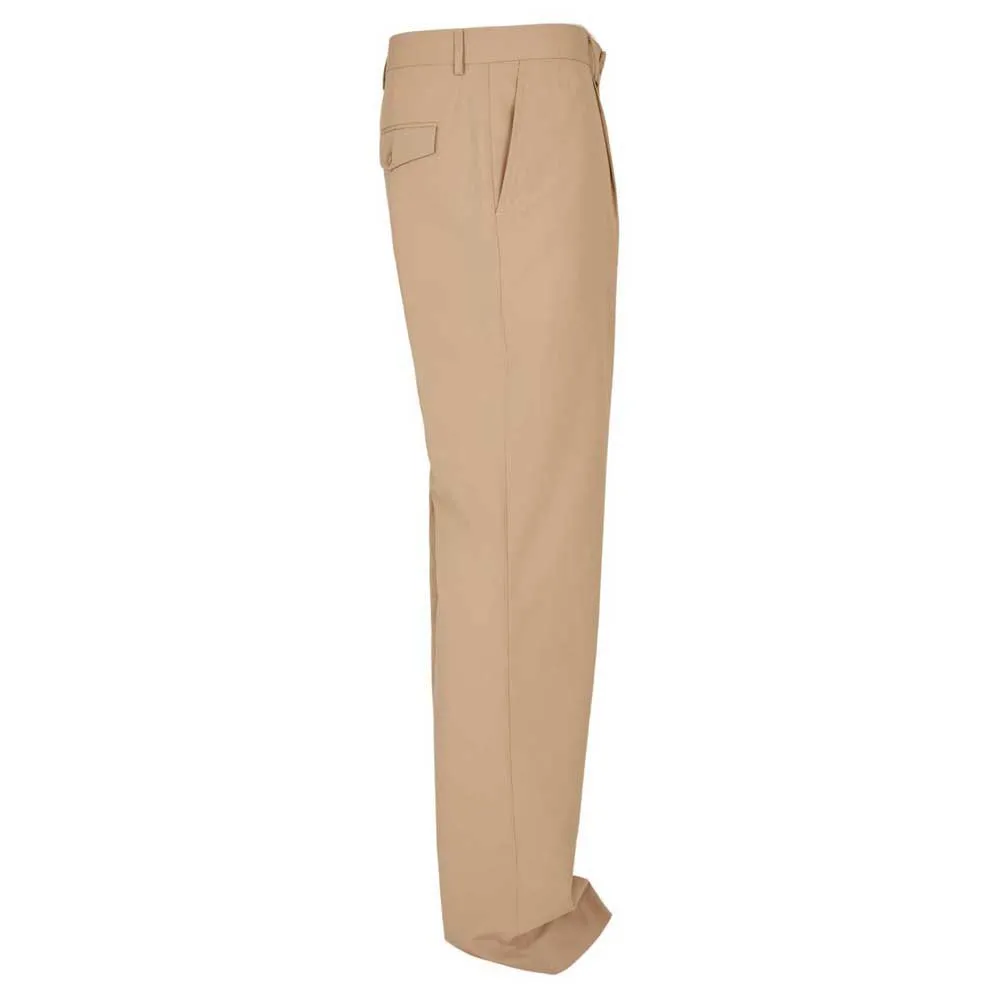 Эти мужские брюки оснащены шлевками для ремня, боковыми карманами и вертикальными складками и излучают классический и уверенный вид.