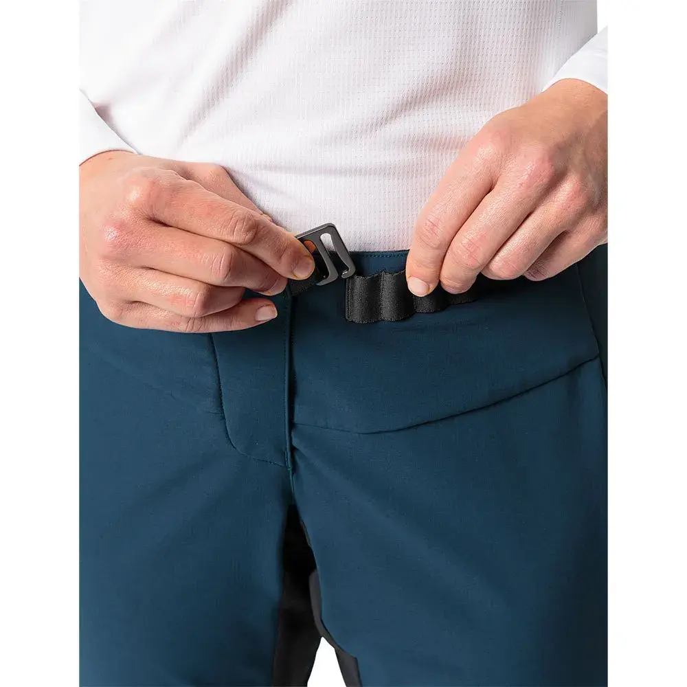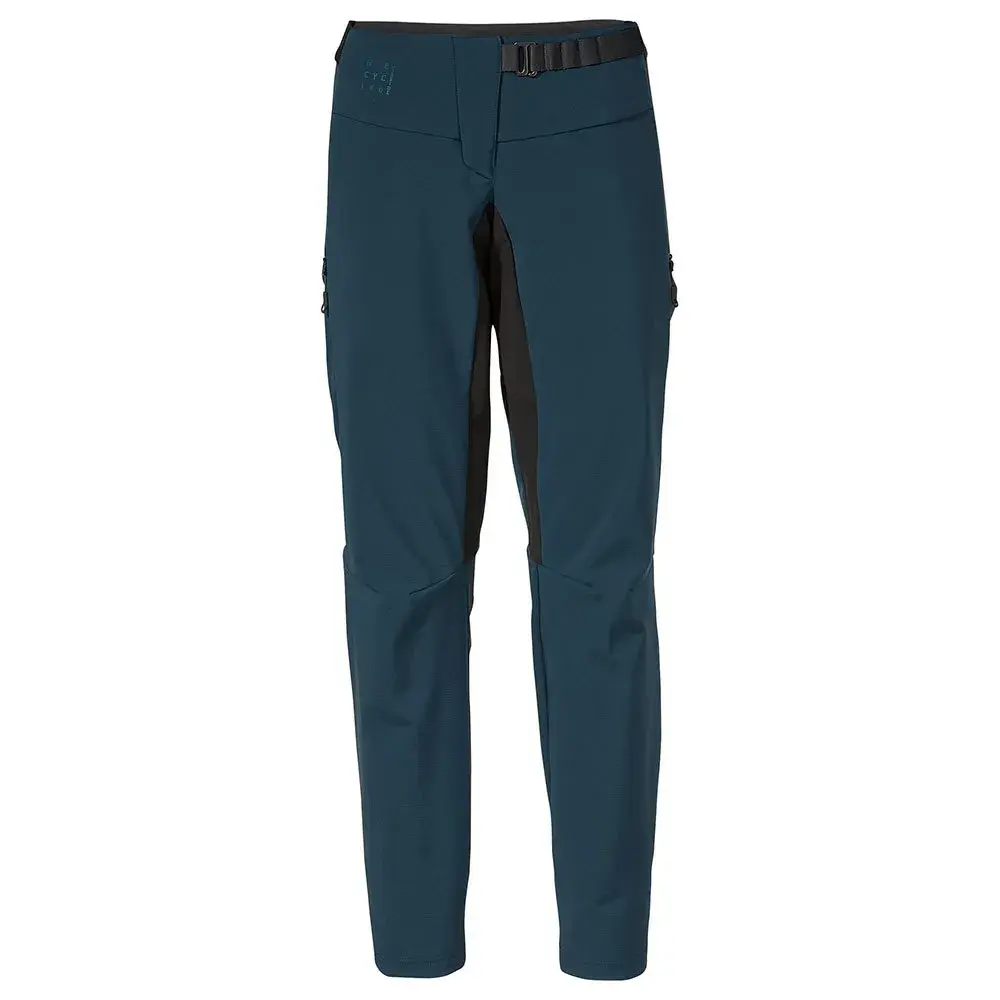 Женские прочные велосипедные брюки для сложных трасс. Эластичные, ветро- и водонепроницаемые, можно носить с защитой. Они климатически нейтральны и изготовлены в основном из переработанных материалов.