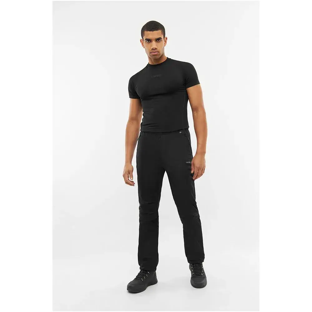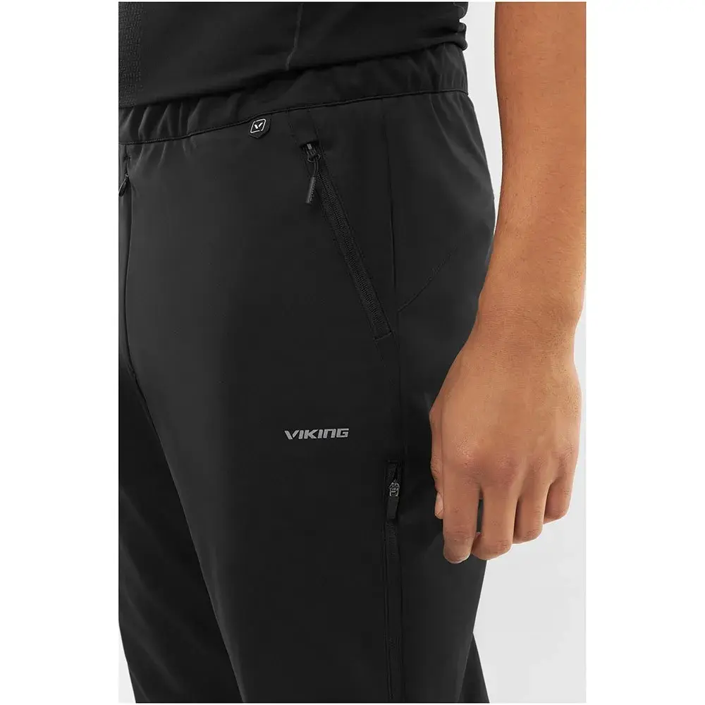 Viking Nordend Man — мужские брюки из 100% полиэстера. Очень эластичные, что позволяет легко регулировать их размер. Они обладают гидрофобными свойствами, благодаря которым капли воды не впитываются в материал, а стекают по нему. Водостойкость составляет 3000 мм. Кроме того, они ветроустойчивы, что обеспечивает дополнительную защиту от холода. Эргономичные колени с вентиляционными вставками обеспечивают отвод пота. Чёрный цвет и классический крой делают их подходящими для многих стилей гардероба.
