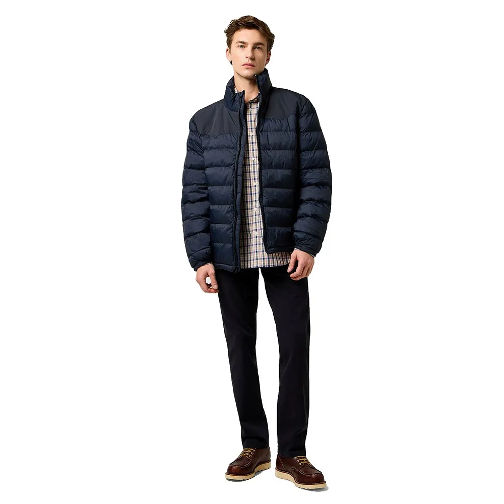 7 шлевок для ремня, два боковых кармана, два прорезных кармана сзади, строчка «W» и темно-коричневая фирменная кожаная нашивка сзади.
