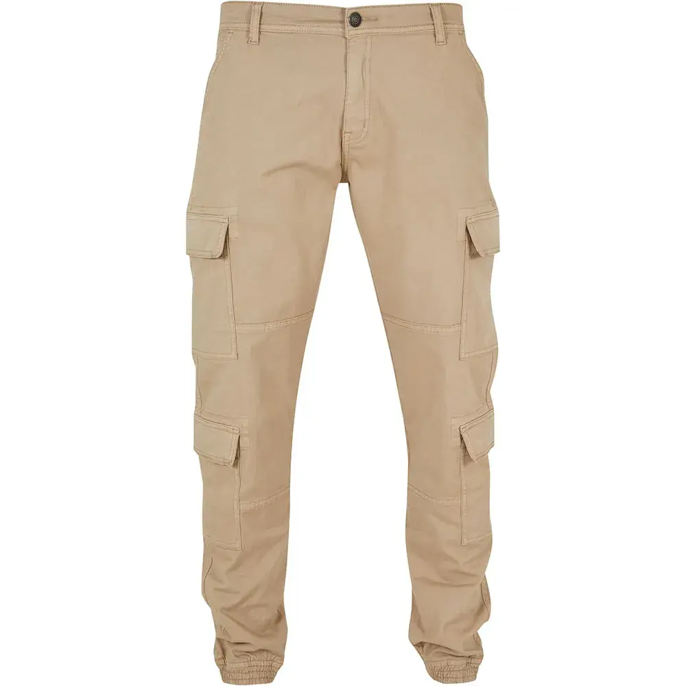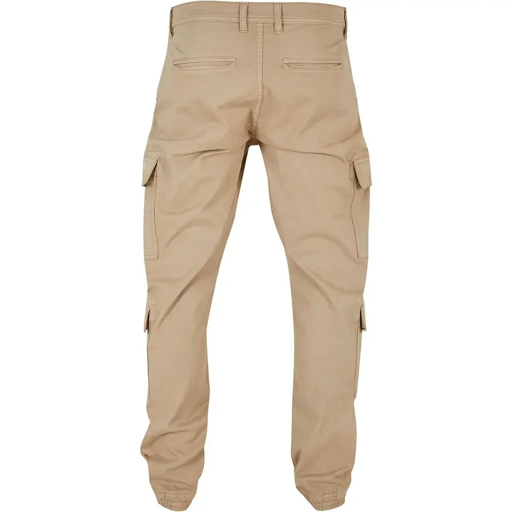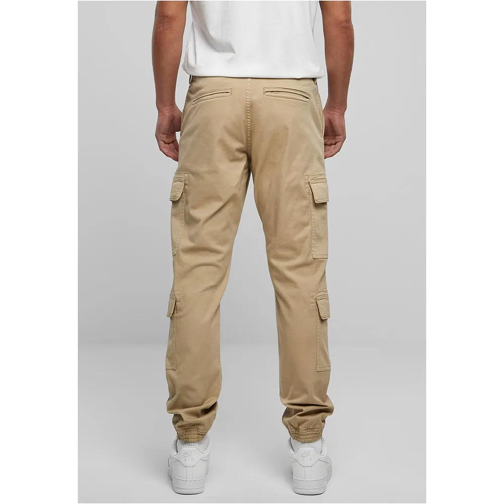 Спортивные мужские брюки-джоггеры с высокой посадкой на бедрах. Два кармана-карго расположены на каждом бедре и дополнены разделительными швами. Эластичные манжеты, боковые карманы и встроенные задние карманы дополняют образ. Мужские брюки-джоггеры сшиты из эластичного твила. Крой классический.