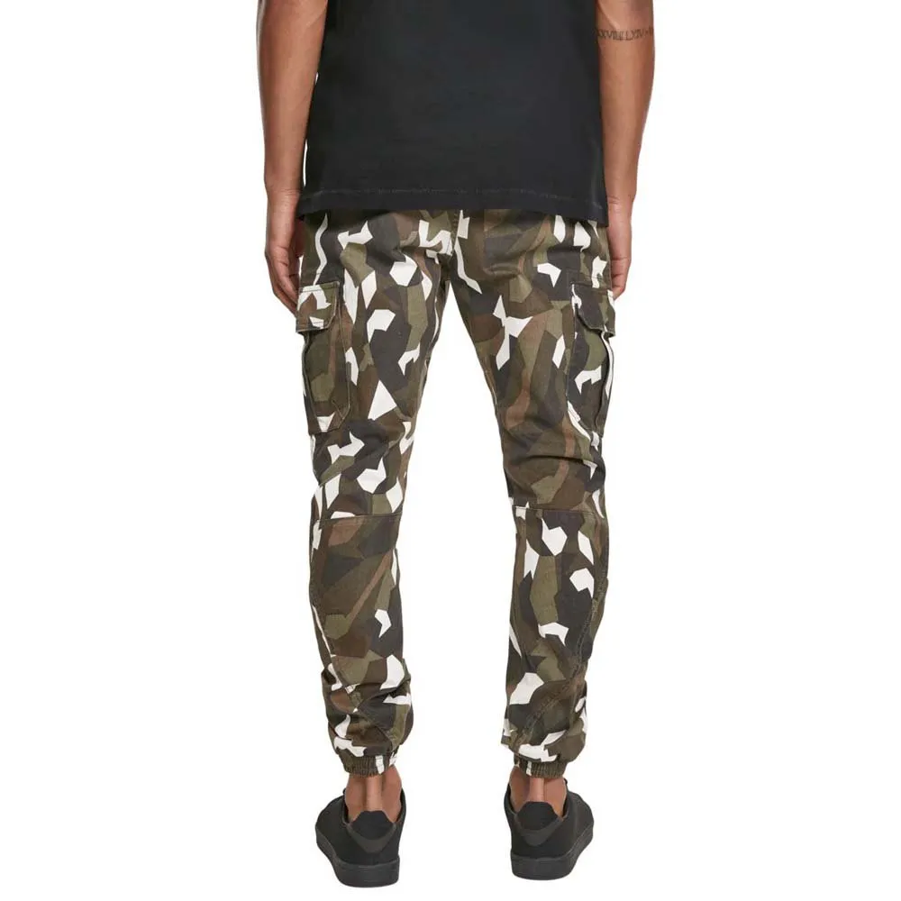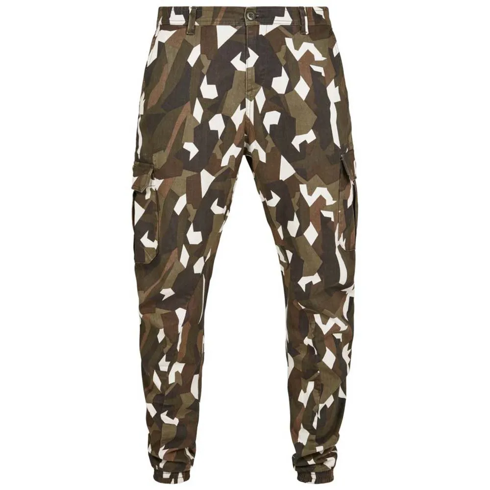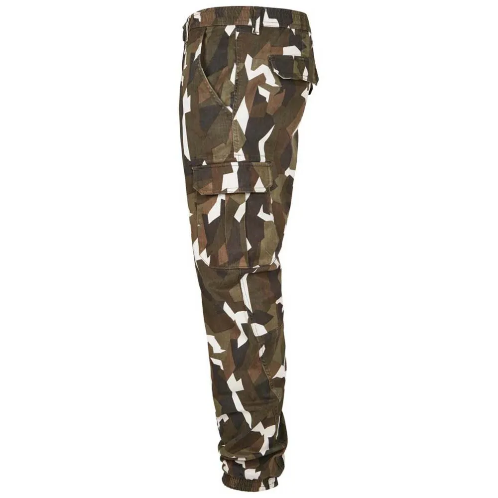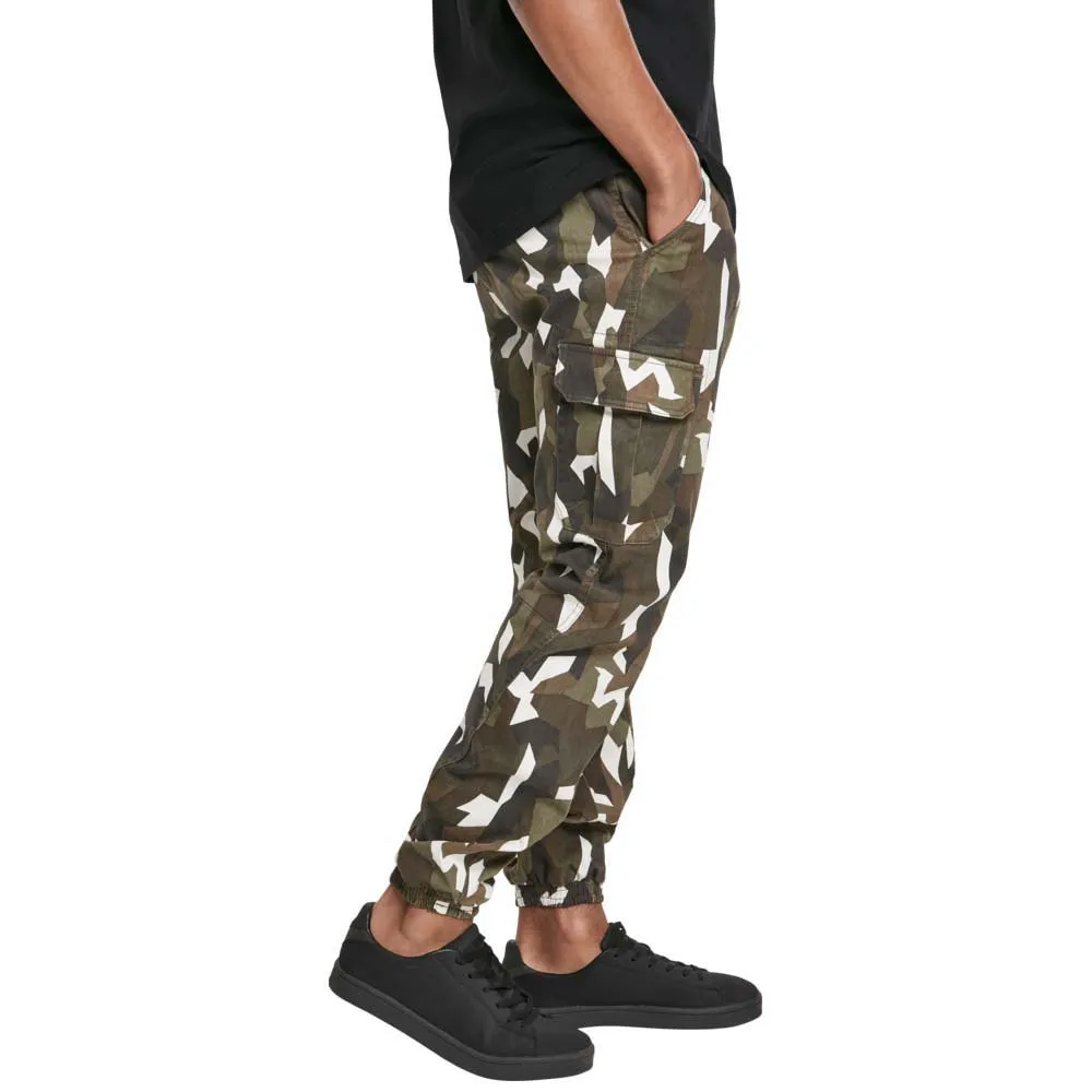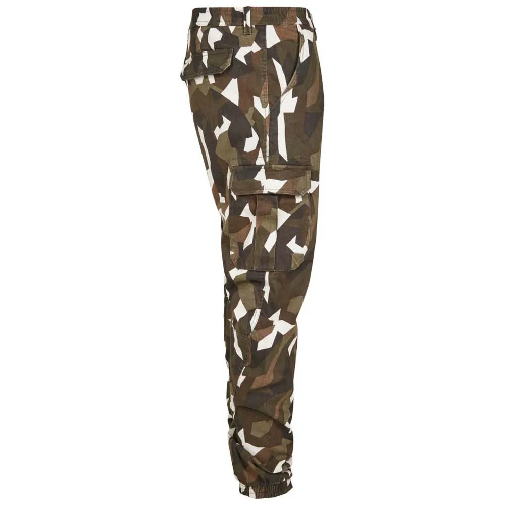 Брюки карго для мужчин, которые ценят индивидуальность. Пояс с пуговицей, молнией и шлевками для ремня, а также удобные эластичные манжеты на штанинах обеспечивают максимальный комфорт. Накладные карманы карго и выразительный геометрический камуфляжный рисунок придают этим брюкам особый шарм и характеризуют их как яркий образец городской моды.