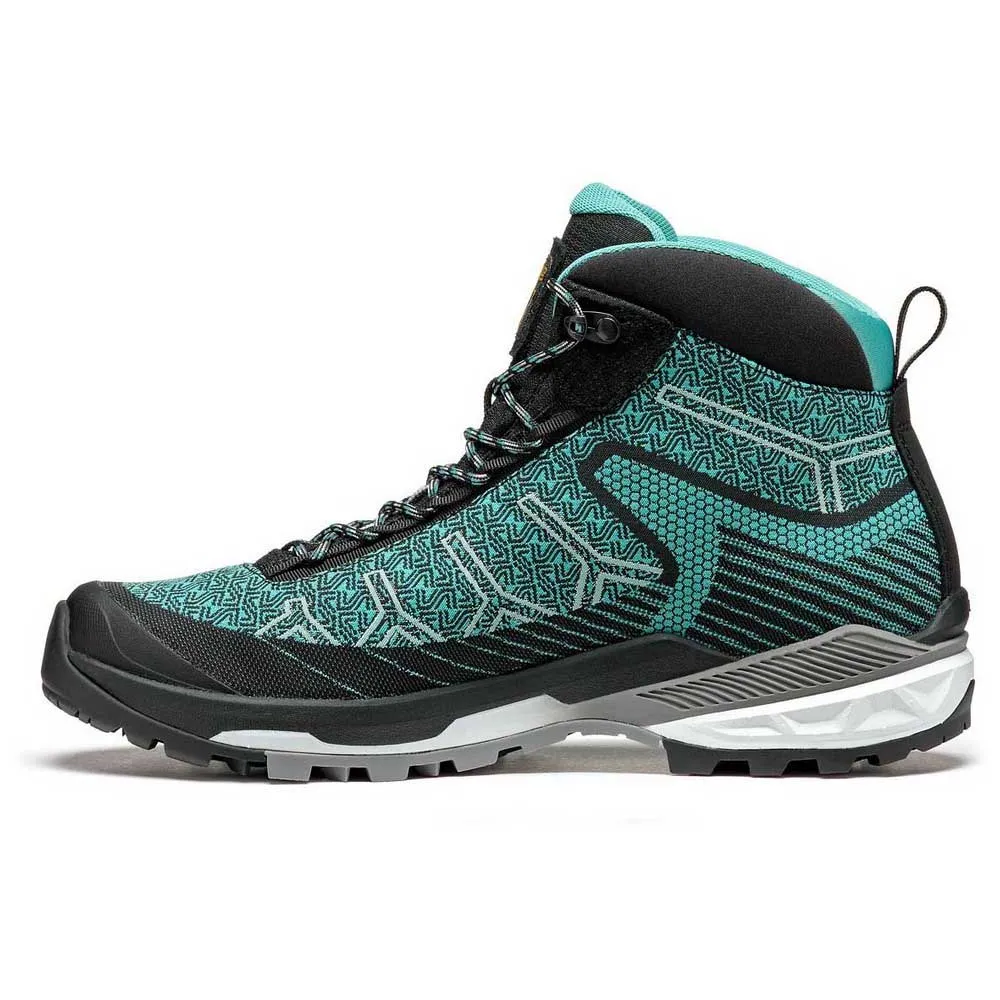 Эти ботинки сочетают в себе идеальную прочность и длительный комфорт, что делает их идеальными для походов по тропам и летних прогулок. Верх из жаккардового плетеного текстиля обеспечивает защиту и комфорт, а подкладка Gore-Tex Extended Comfort Footwear гарантирует водонепроницаемость и воздухопроницаемость. Двухслойная промежуточная подошва из Eva: первая плотность более жёсткая для поддержки и устойчивости, вторая — более мягкая, обеспечивающая комфорт и амортизацию. Подошва Asolo/Vibram имеет самоочищающуюся конструкцию и использует состав MegaGrip, обеспечивающий превосходное сцепление и производительность как на мокрой, так и на сухой поверхности. Для завершения модели предусмотрен защитный колпачок из термопластичного полиуретана и новая система шнуровки для быстрой и точной шнуровки.