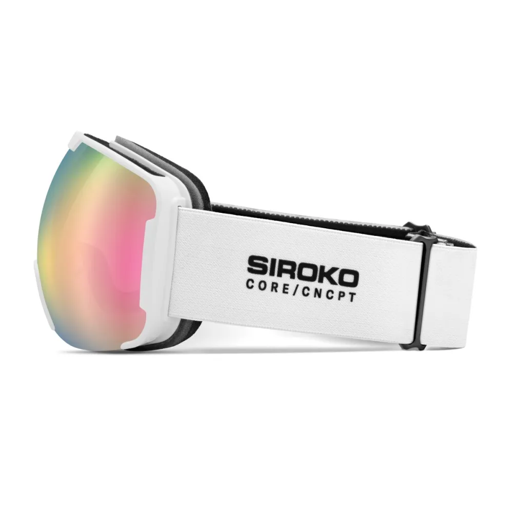 Зимние спортивные очки с легкой оправой из термополиуретана и сферической поликарбонатной линзой с обработкой против запотевания и покрытием от царапин.