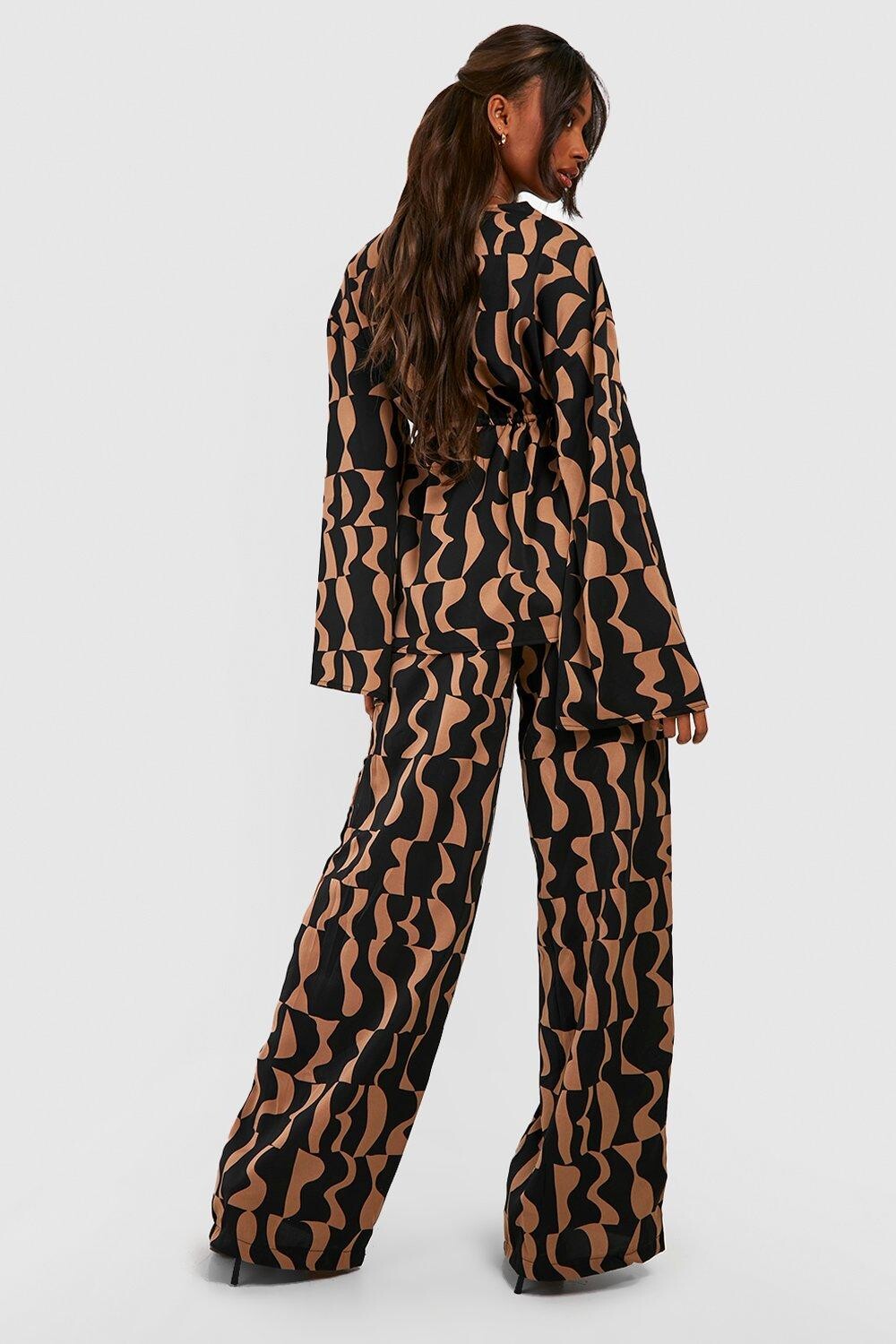 Широкие брюки с абстрактным принтом Boohoo, мокка