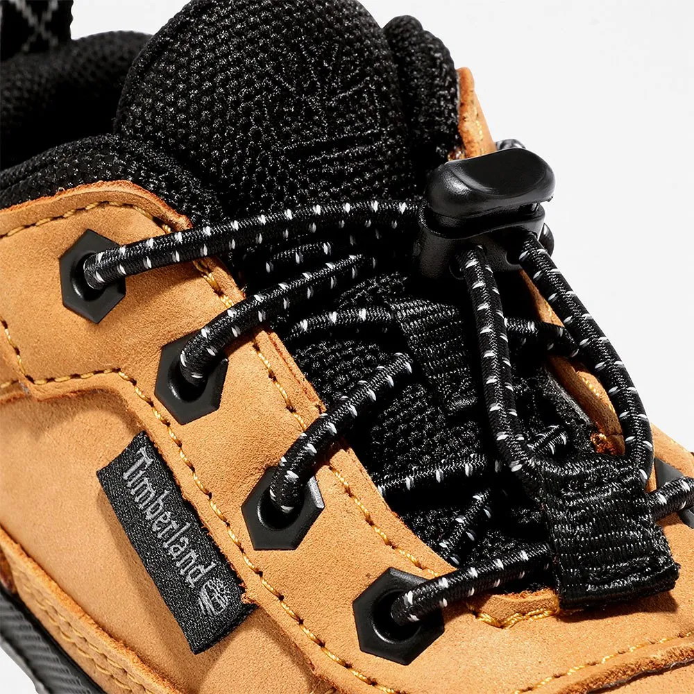 Эти прочные детские кожаные кроссовки созданы для активных игр на свежем воздухе и удивительно удобны благодаря верху из кожи премиум-класса Timberland и подкладке из ткани ReBOTL, содержащей не менее 50% переработанного пластика.