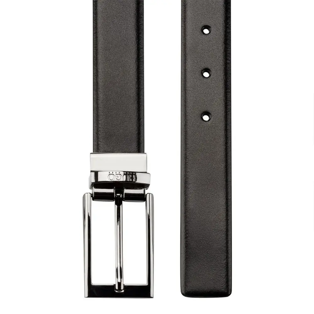 Ремень «два в одном» от HUGO с двусторонним дизайном, предлагающий выбор из двух цветовых вариантов. Ремень шириной 3 см из гладкой кожи застегивается на элегантную пряжку с полированным эффектом оружейного металла. Металлическая застежка украшена гравировкой логотипа, что добавляет этому универсальному деловому аксессуару фирменный стиль.