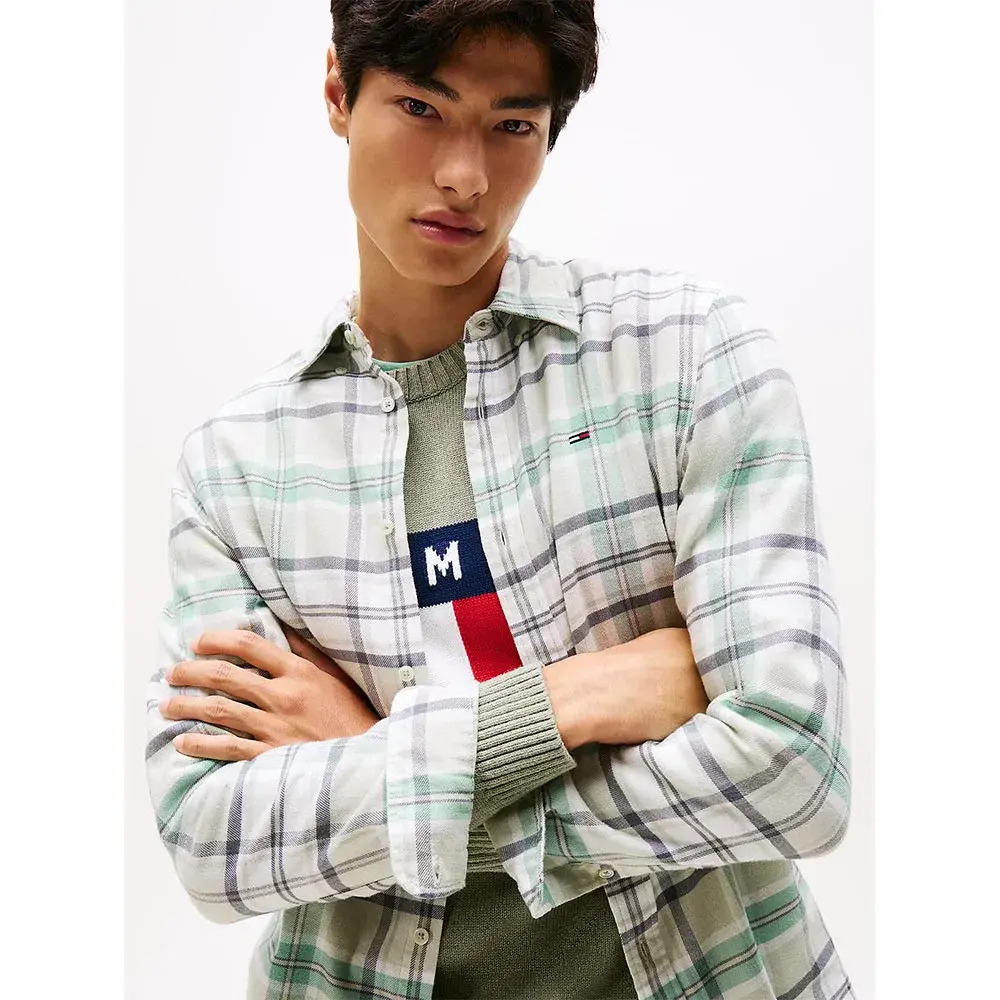 Эта фланелевая рубашка имеет классический крой и классический клетчатый рисунок в ярких тонах индиго.