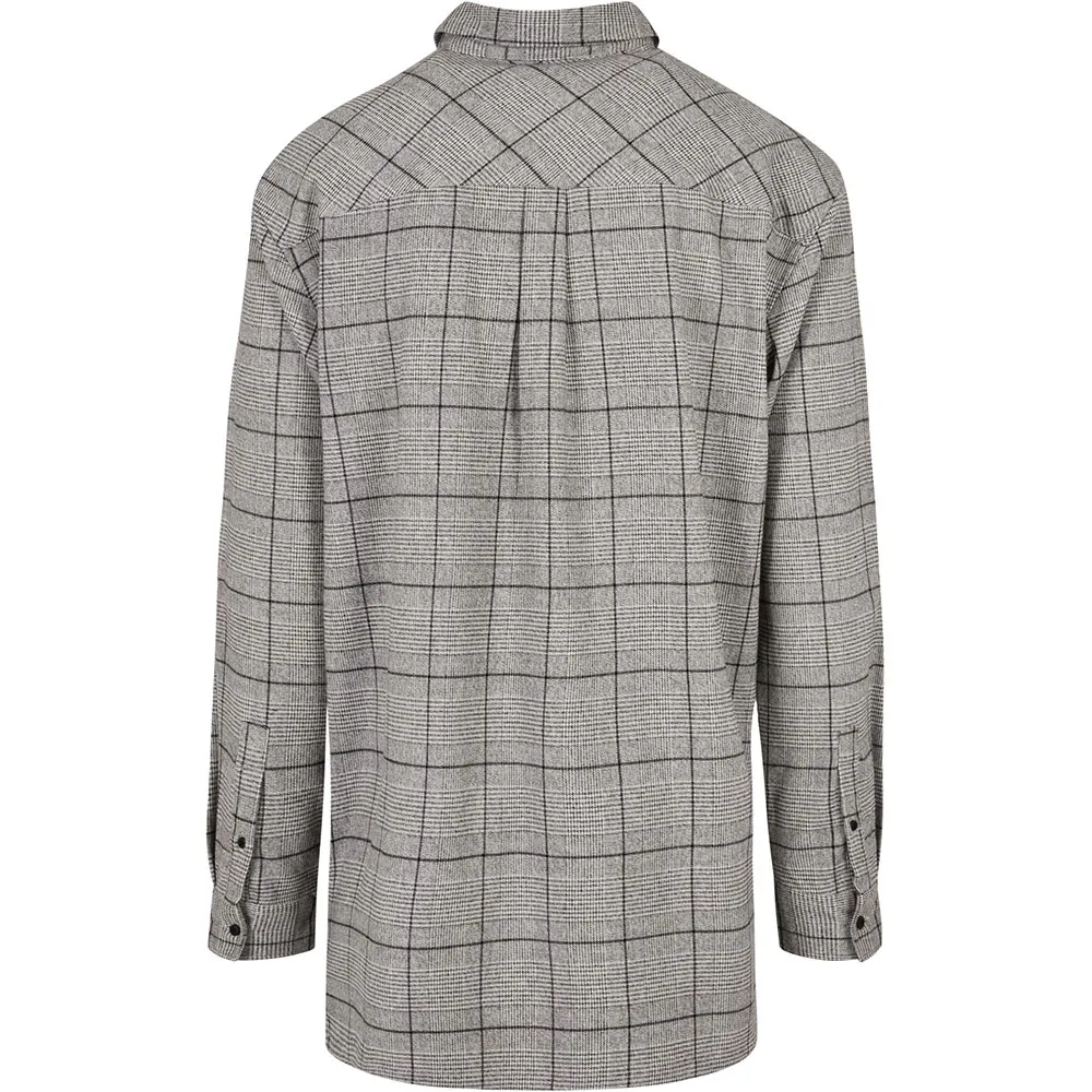 Мужская рубашка с уверенным клетчатым рисунком, длиной выше ягодиц и модным свободным кроем со спущенными плечами. Воротник, планка с пуговицами и нагрудные карманы, а также разрезы на манжетах рукавов дополняют городской стиль. Боковой шов также слегка разрезанный. Мужская рубашка изготовлена из полиэстера, вискозы и эластана.