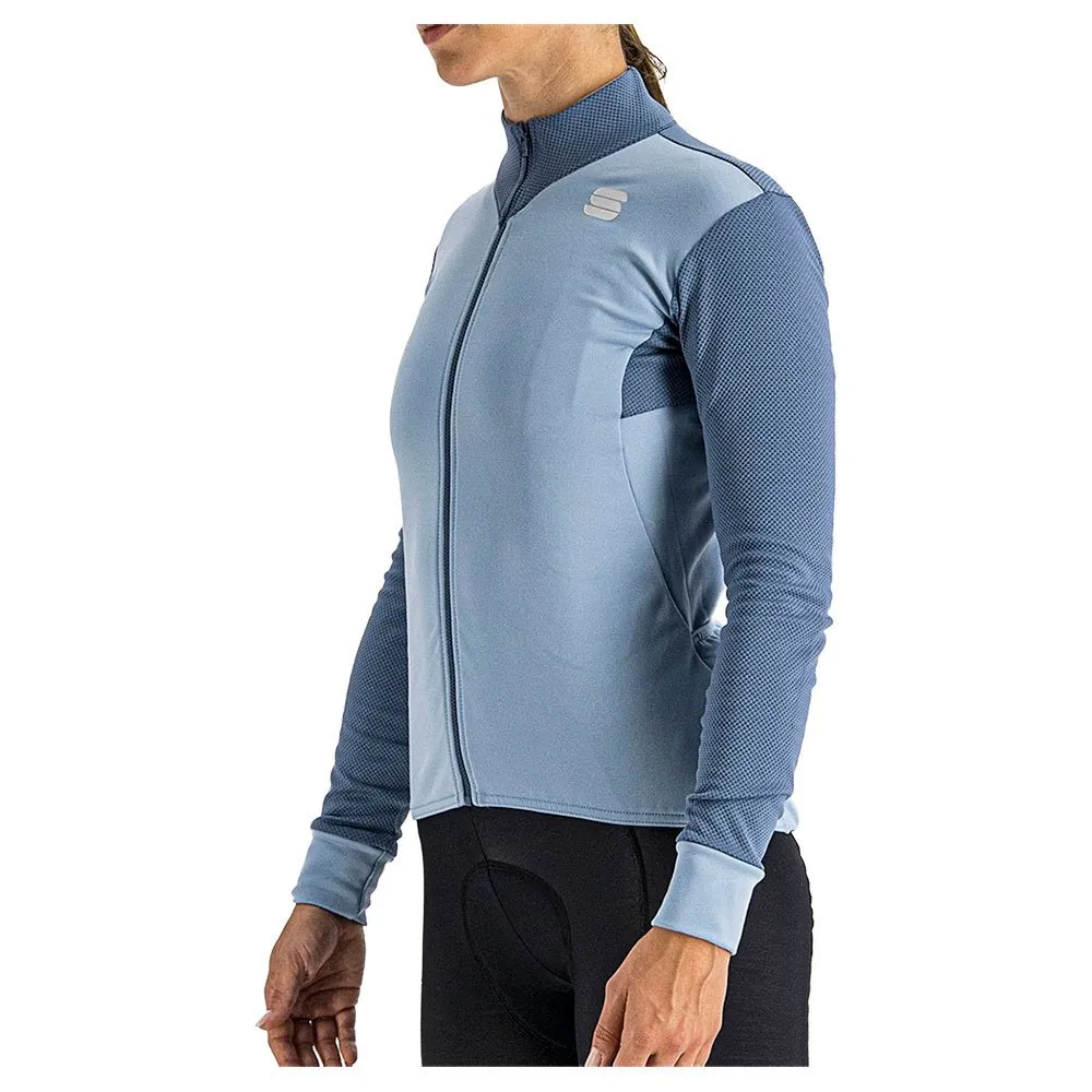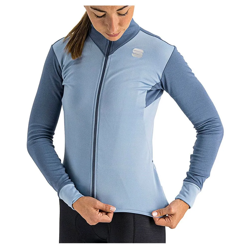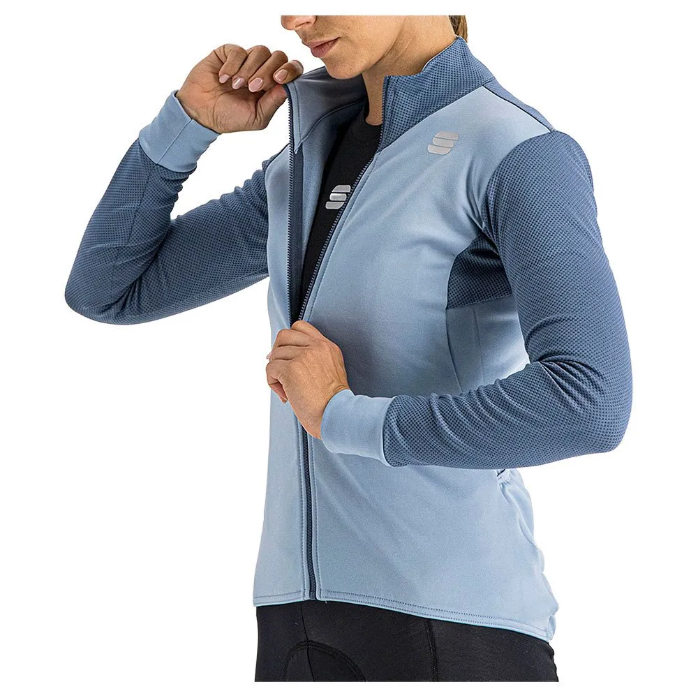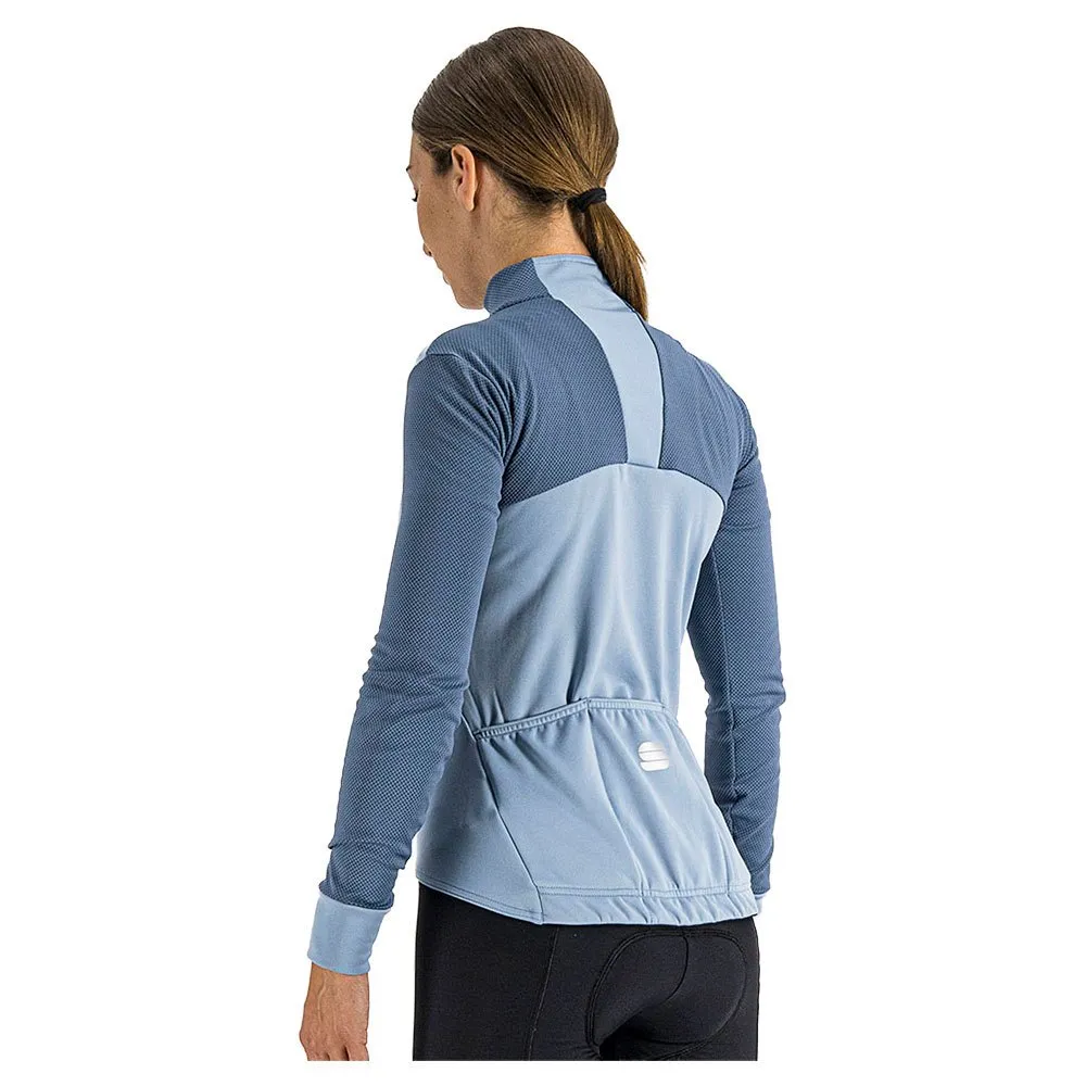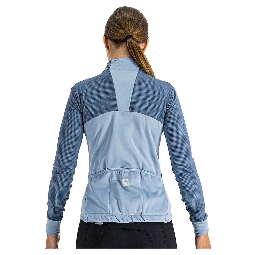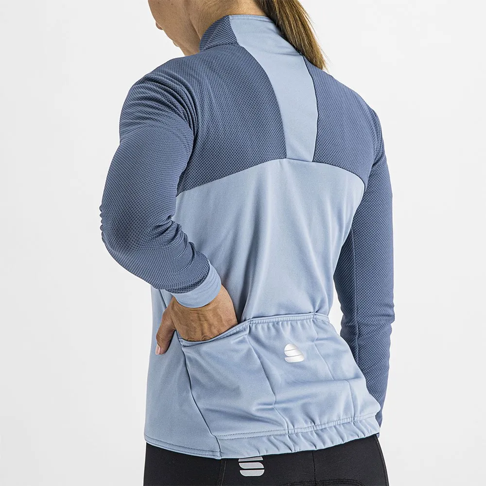 Основная часть, воротник и манжеты выполнены из гладкого, эластичного полиэстера с начесом. Рукава, внешняя часть воротника и кокетка на спине выполнены из текстурированной ткани с двойным окрашиванием для создания эффекта светотени.