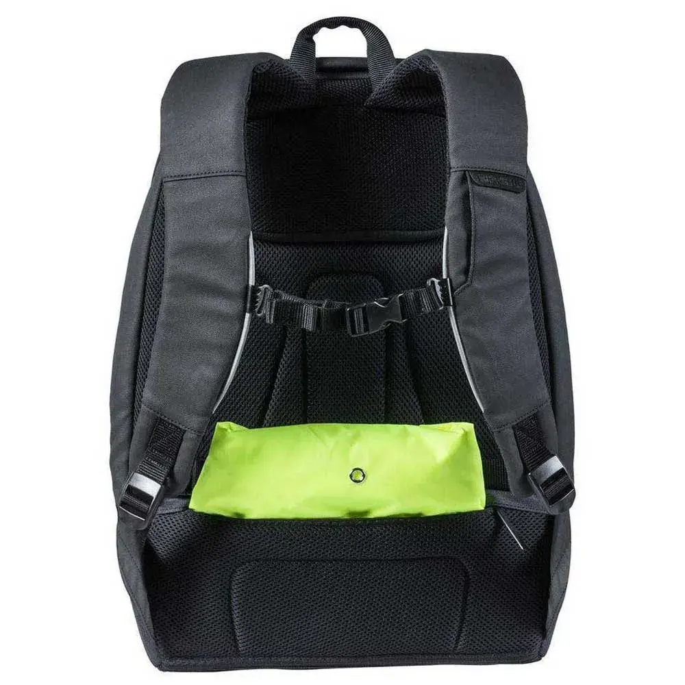 Рюкзак Basil B-Safe Nordlicht вмещает 18 литров и представляет собой яркий рюкзак с несколькими инновациями. Велосипедный рюкзак? Да, но это и сумка-корзина, и рюкзак в одном! Сумка оснащена функцией защиты от кражи благодаря скрытой молнии и нескольким скрытым карманам. Благодаря этому вы можете брать свои вещи с собой с уверенностью! В сумке достаточно места для 15,6-дюймового ноутбука и iPad. Также есть место для зарядного устройства для электровелосипеда и различных мелких аксессуаров. На плечевом ремне есть скрытый карман для ваших важных карточек и небольших документов, а через USB-порт вы можете заряжать свой смартфон во время движения. Еще одна умная функция — светодиодная подсветка Nordlicht Technology* на передней части сумки. Она не заменяет обычное освещение, а добавляет дополнительную видимость. Рюкзак Basil B-Safe имеет мягкие плечевые ремни и полностью мягкую спинку, поэтому вы можете носить рюкзак с комфортом. Нагрудный ремень удерживает плечевые ремни вместе даже во время езды на велосипеде. Вы просто крепите сумку к креплению вашего велосипеда или электровелосипеда с помощью системы Hook-On. Более того, поскольку вес сумки принимается на себя креплением, ваша поездка на велосипеде будет более устойчивой и безопасной, что делает рюкзак удобным дополнением для утренних поездок на работу в условиях плотного трафика.