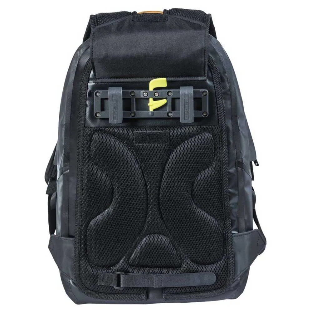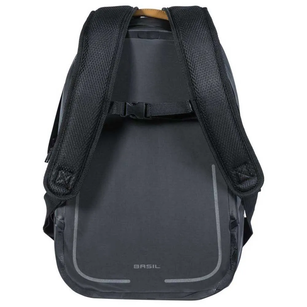 Basil Urban Dry Backpack — это рюкзак и велосумка в одном — удобно, когда вы едете на работу на велосипеде. Благодаря системе Hook-On вы можете прикрепить велорюкзак к любому багажнику, в том числе на электровелосипеде. Это гарантирует безопасную и надежную доставку рюкзака, а поскольку вес рюкзака не ложится на спину, вы можете кататься на велосипеде с большим комфортом. По прибытии на работу вы можете нести рюкзак, используя полностью мягкую спинку и плечевые ремни. Нагрудный ремень удерживает плечевые ремни вместе — идеально для походов по магазинам или занятий в школе. Объем рюкзака составляет 18 литров, а внутренний карман застегивается на молнию. Что делать, если пойдет дождь? Без проблем! Рюкзак водонепроницаемый и сохранит ваши вещи сухими. Кроме того, рюкзак изготовлен из прочной ткани и выдерживает интенсивную езду — это полезно, когда вы едете на спортивные мероприятия, за покупками или просто отдыхаете. А как насчет школьных принадлежностей, например? Благодаря светоотражающим элементам по всем сторонам вы будете более заметны в темноте. Кроме того, сумка оснащена петлями для крепления светодиодного освещения.