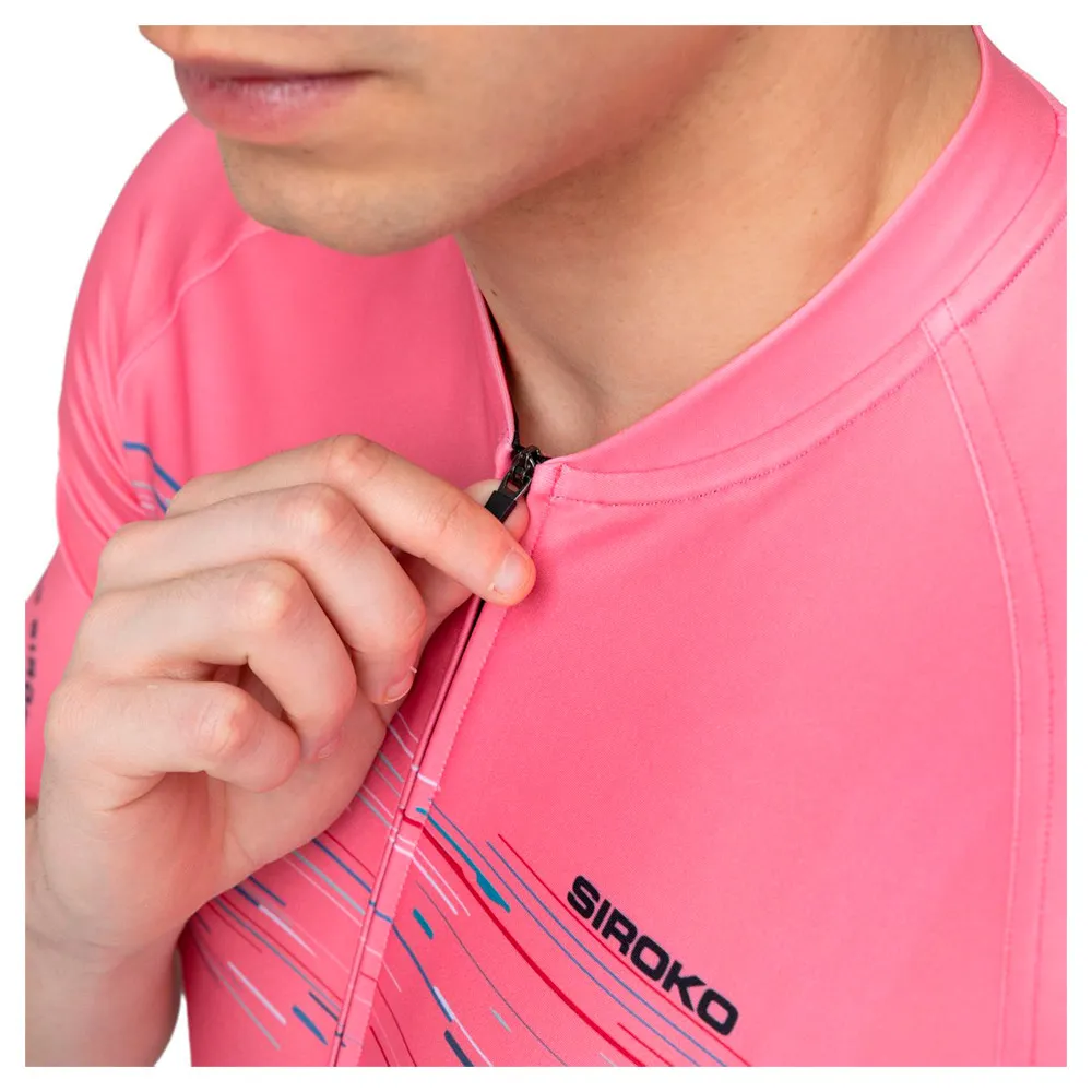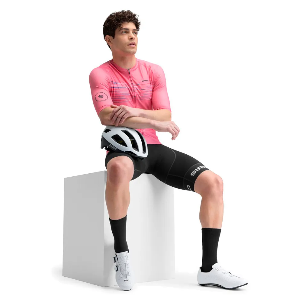 Веломайка M2 Toscano обеспечивает непревзойденный комфорт. Крой Race Slim Fit гарантирует идеальную посадку на шее, рукавах и талии, а технология Breathlock+ обеспечивает оптимальную воздухопроницаемость. Полностью аэродинамичные короткие рукава идеально подходят для летних прогулок, а использование тканей последнего поколения, сочетающих полиэстер и эластан, обеспечивает высокую эластичность. Полуавтоматическая полностью скрытая молния SBS, антифрикционная защита Zip Guard, светоотражающая бирка безопасности и три кармана сзади дополняют остальную часть дизайна.