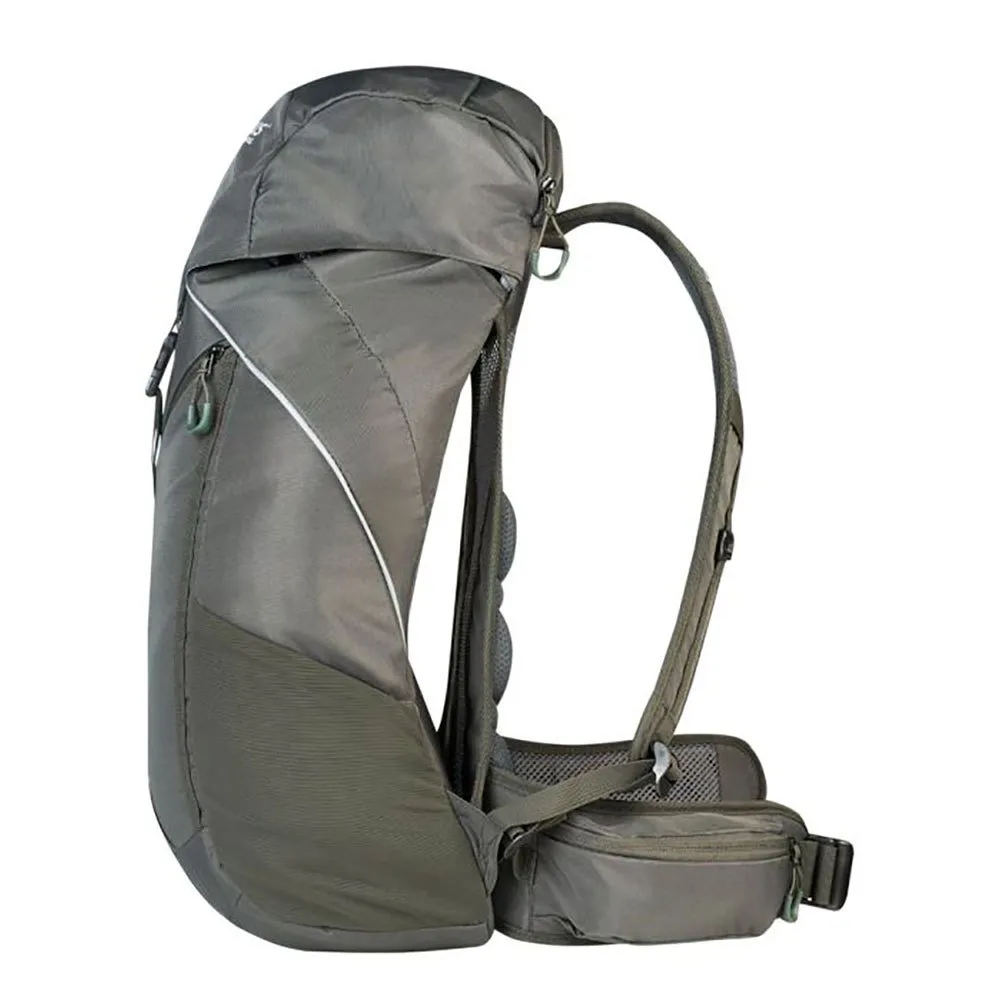 Оснащена вентилируемой спинкой, дышащими мягкими плечевыми ремнями, нагрудным ремнем (со свистком) и регулируемым мягким поясом для большего комфорта. Большое основное отделение с внутренним карманом, а также боковые эластичные сетчатые карманы для бутылки или других вещей. На верхнем клапане расположен внешний карман, а внизу — специальный карман для дождевика. На поясном ремне есть перекрестный сетчатый карман и еще один на молнии.