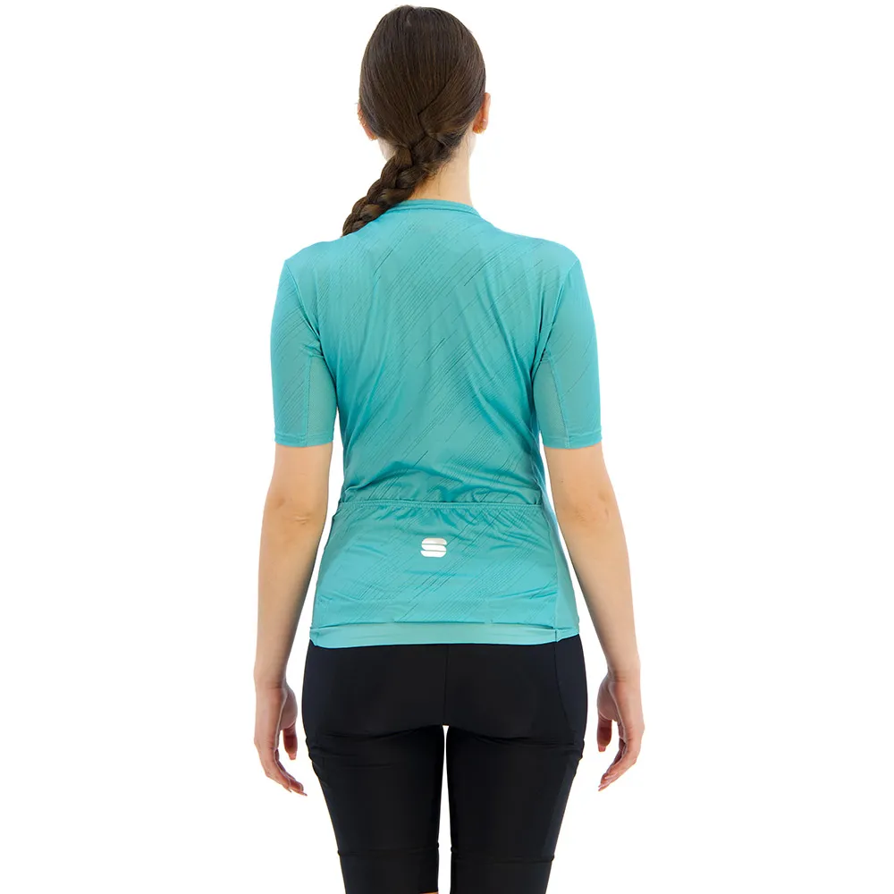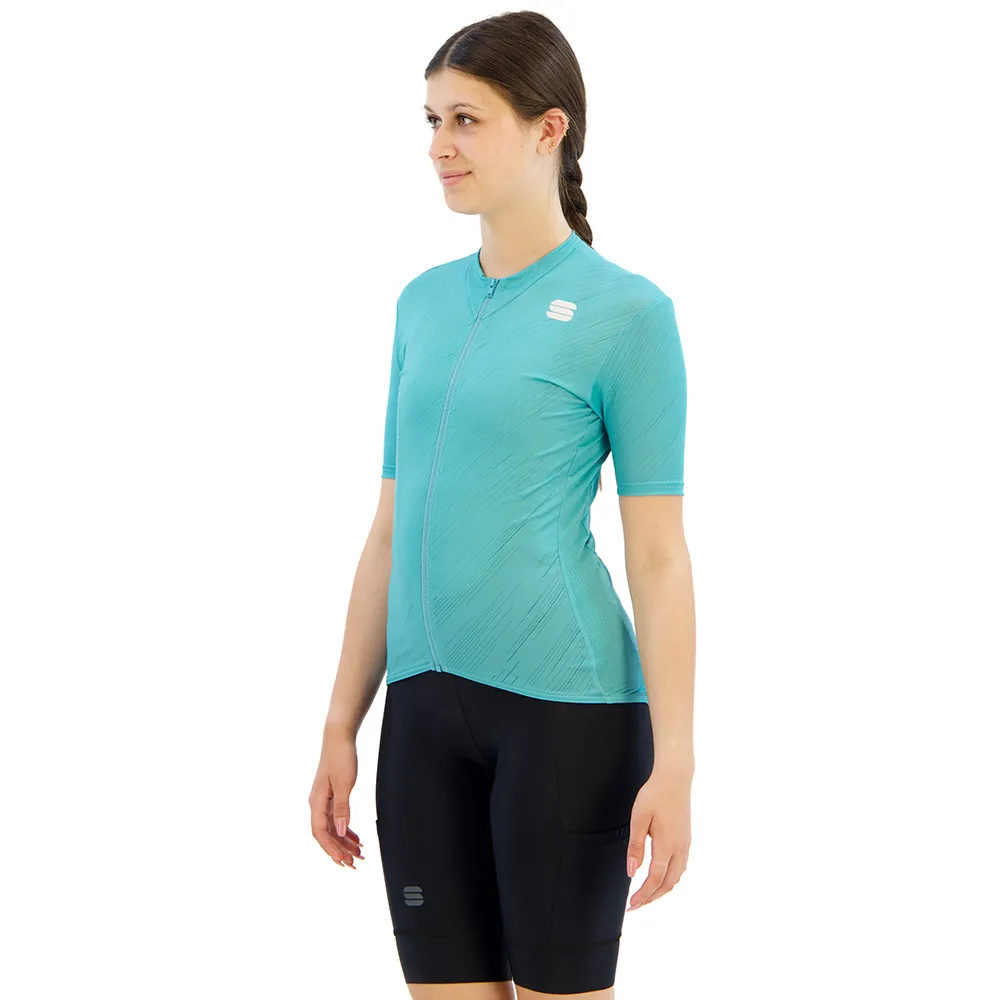 Да, это однотонный джерси. Но присмотритесь внимательнее. Ткань невероятно лёгкая, что делает её идеальной для самых жарких летних поездок. Благодаря этой ткани мы смогли использовать новую технику микроперфорации для создания диагонального узора, который придаёт изделию изящность и элегантность. Короче говоря, однотонный цвет, но с интересным графическим мотивом без использования принтов или нашивных элементов.