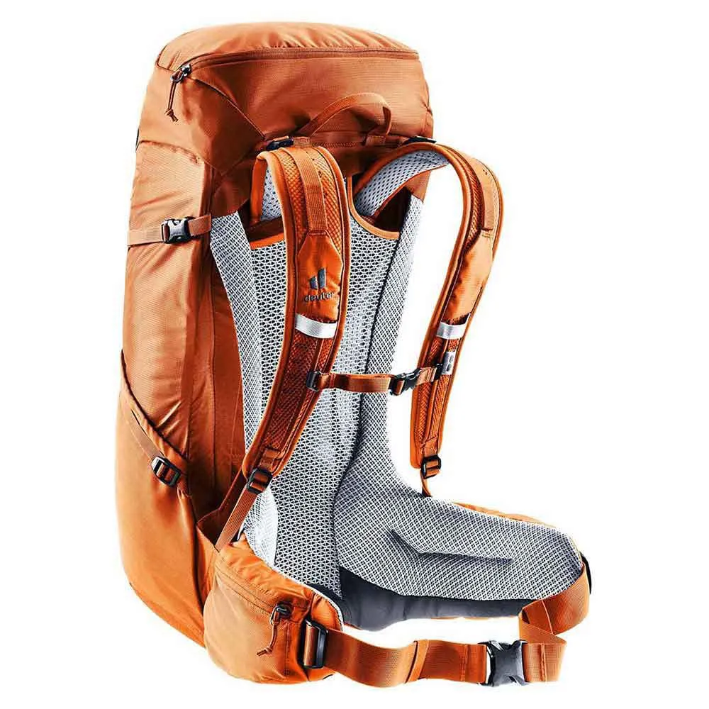 - Эта новая сетчатая система спины объединяет максимальную вентиляцию, эргономичный комфорт и легкость. Инновационная конструкция секции набедренных ремней и плавный переход к задней сетке охватывают переноску и обеспечивают удобную посадку. Гибкая каркасная конструкция из постоянно эластичной и прочной пружинной стали придает сетке Aircomfort Back Mesh стабильное натяжение. Она создает надежное вентиляционное пространство между рюкзаком и спиной, через которое влажный воздух может свободно испаряться. Благодаря запатентованной системе трехсторонней вентиляции Deuter пользователь потеет до 25%* меньше. Высокая гибкость всей конструкции обеспечивает свободу движений.