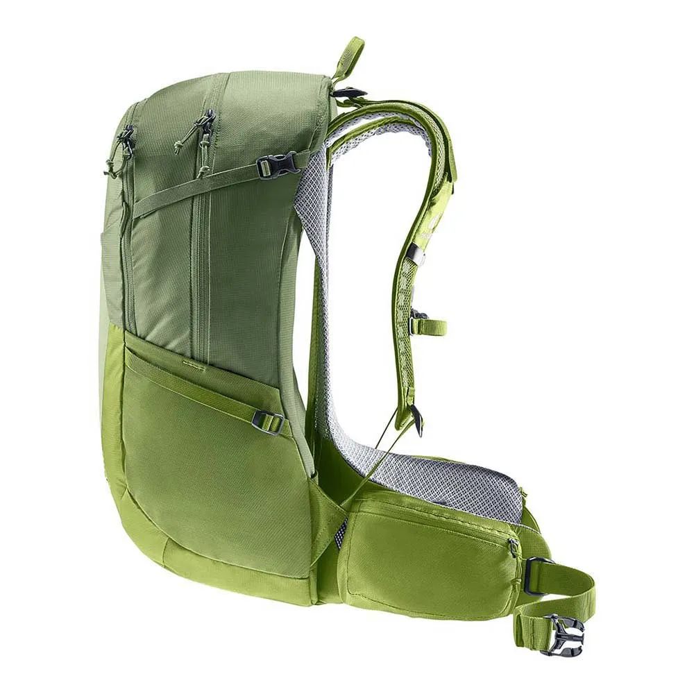 Этот лёгкий и технологичный рюкзак идеально подходит для однодневных походов с интенсивными физическими нагрузками: система Aircomfort Back System невероятно комфортна, а новая сетка обеспечивает максимальную вентиляцию спины. Результат — снижение потоотделения на 25% и, как следствие, повышение эффективности. Передний карман из эластичной сетки отлично подходит для проветривания мокрой одежды во время движения (например, после быстрого купания в горном ручье). Основной материал серии Futura изготовлен из сертифицированного материала Bluesign. Особенности: