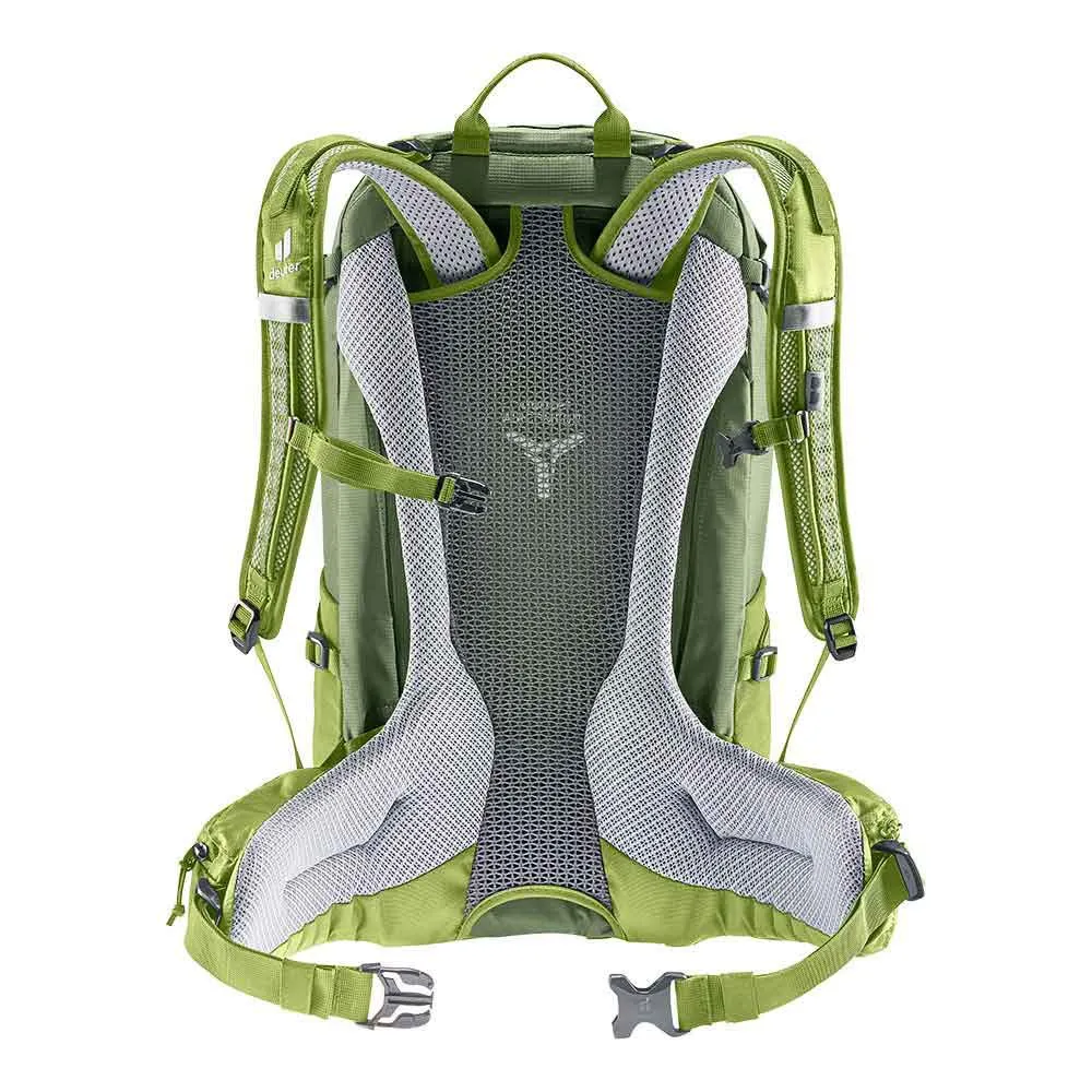 - Эта новая сетчатая система спины объединяет максимальную вентиляцию, эргономичный комфорт и легкость. Инновационная конструкция секции набедренных ремней и плавный переход к задней сетке охватывают переноску и обеспечивают удобную посадку. Гибкая каркасная конструкция из постоянно эластичной и прочной пружинной стали придает сетке Aircomfort Back Mesh стабильное натяжение. Она создает надежное вентиляционное пространство между рюкзаком и спиной, через которое влажный воздух может свободно испаряться. Благодаря запатентованной системе трехсторонней вентиляции Deuter пользователь потеет до 25%* меньше. Высокая гибкость всей конструкции обеспечивает свободу движений.