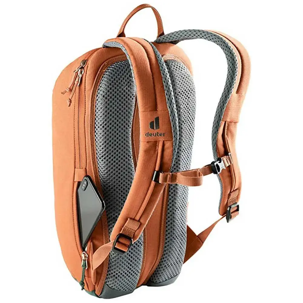 Благодаря перфорированным эргономичным плечевым ремням и уменьшенной площади контакта спинки Airstripes от Deuter, рюкзак Stepout отличается вентиляцией и комфортом переноски. Двусторонняя застёжка-молния, карман для мобильного телефона сбоку на спинке и эластичные боковые карманы обеспечивают быстрый доступ к важным вещам. Внутри есть карман для документов и отделение для ноутбука для более организованной упаковки. Этот продукт Bluesign, сертифицированный Green Button, изготовлен из ткани без содержания перфторуглеродов (PFC) из 100% переработанных ПЭТ-бутылок (17 бутылок по 0,5 литра) в соответствии со стандартами Bluesign.