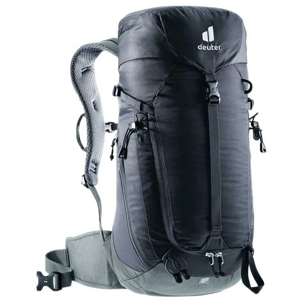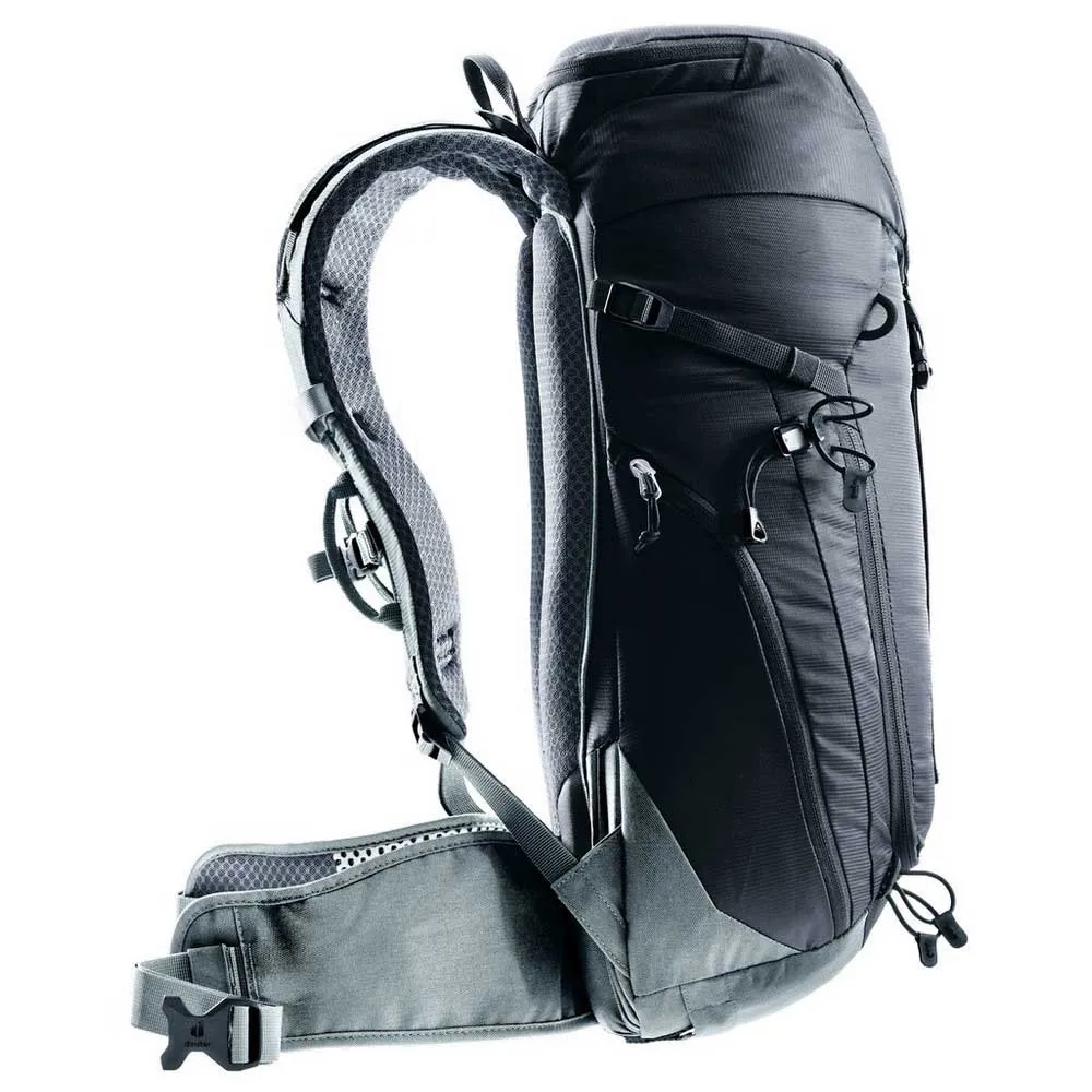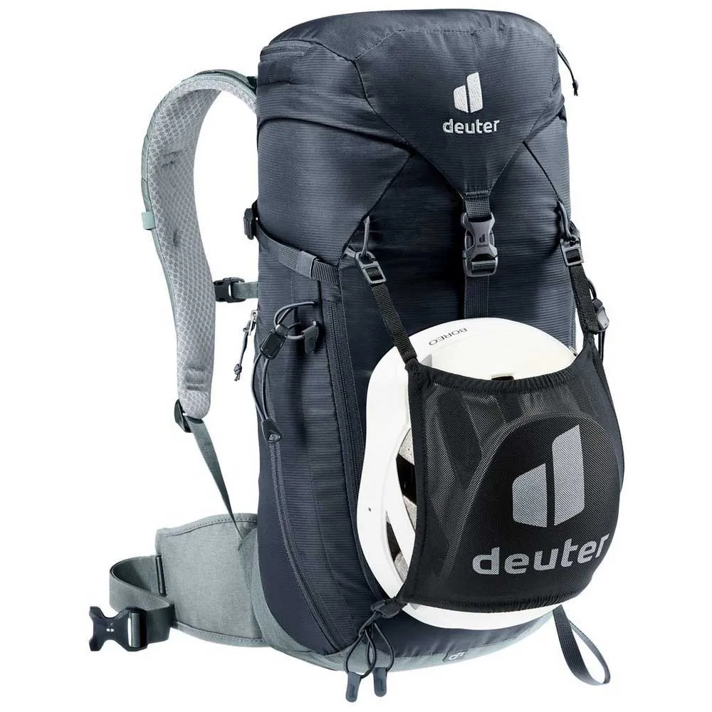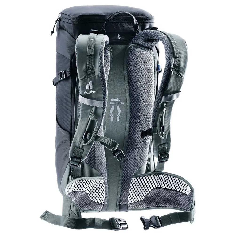 Уменьшенная площадь соприкосновения и большие вентиляционные каналы спинной системы Deuter Airstripes в сочетании с перфорированными плечевыми ремнями и набедренными ребрами обеспечивают максимальный воздушный поток и равномерное распределение веса, обеспечивая плотное и надежное прилегание на любой местности. Плоский клапан позволяет голове свободно двигаться даже в шлеме. Петли на плечевых ремнях позволяют держать карабины Via Ferrata Set под рукой. А благодаря большой передней молнии и боковым карманам, снаряжение и экипировка всегда будут под рукой.