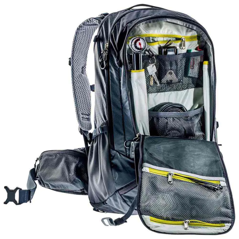- Линейка Trans Alpine от Deuter — это абсолютная классика. С моделью Trans Alpine Pro 28 специалисты по рюкзакам представляют полностью переработанную версию, которая должна быть еще более увлекательной на тропе. Помимо прочего, рюкзак имеет сравнительно небольшую площадь соприкосновения, что улучшает вентиляцию. Поясной ремень имеет удобную подкладку. Объем 28 литров разумно разделен на различные отделения. Инструменты и запасные части можно хранить наглядно и легкодоступно в большом раскладном органайзере. Отдельное отделение вмещает питьевую систему. В комплект также входит чехол от дождя.