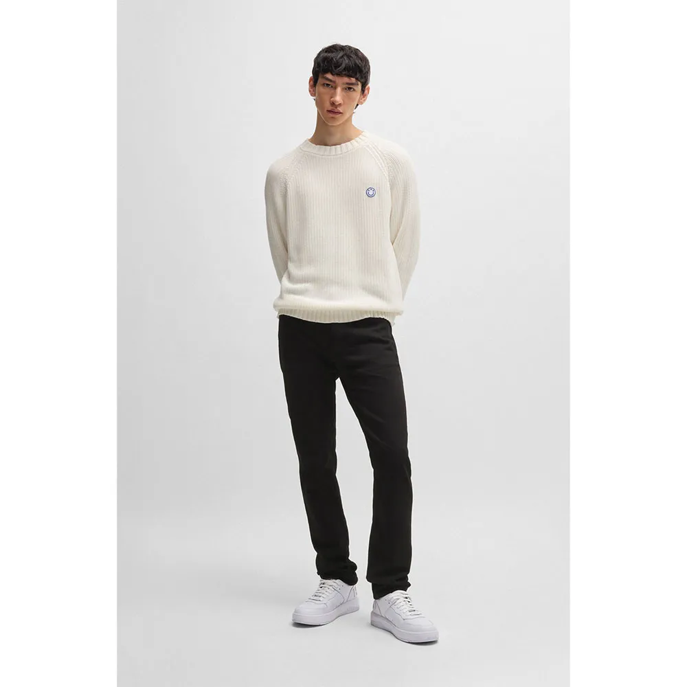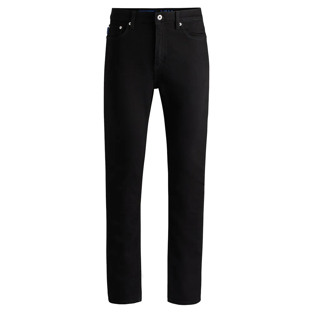 Выстиранные джинсы облегающего кроя с прямыми штанинами и стандартной посадкой от HUGO Menswear, украшенные фирменными деталями.