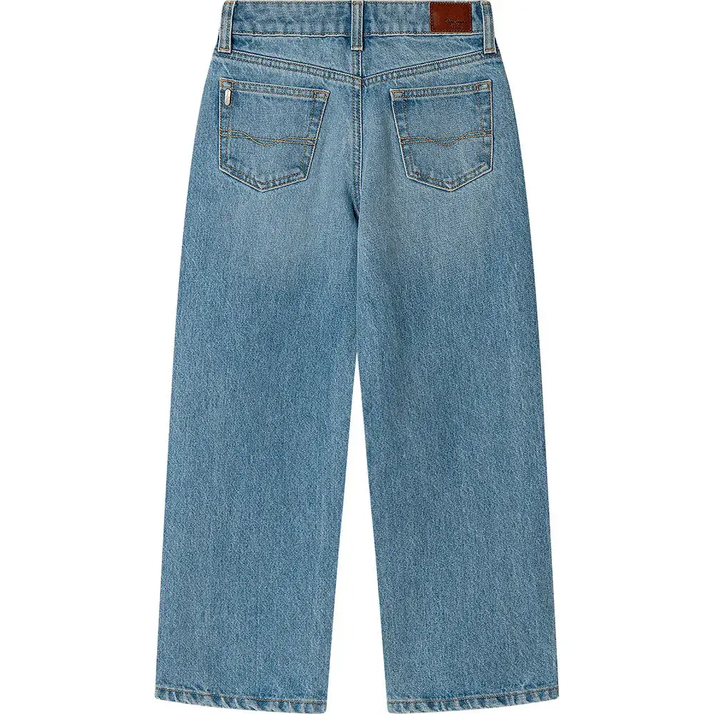 Низкая посадка, свободный крой джинсовой ткани с прямыми штанинами, украшенными металлическими заклепками для нотки рок-н-ролльного духа.