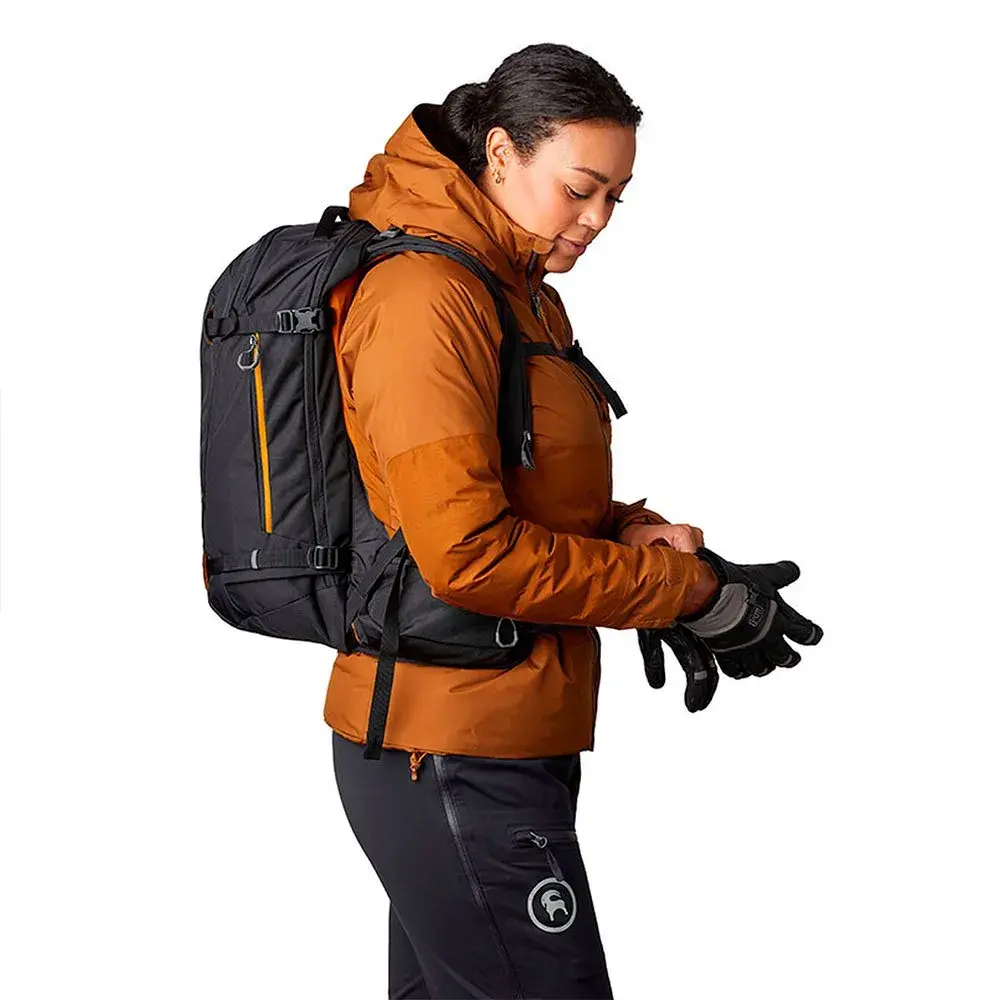 - Поясной ремень CloudControl сконструирован как ремень для очков, чтобы исключить хвосты лямок, а плечевые лямки удерживаются, чтобы избежать зависания во время поездок на подъемнике.