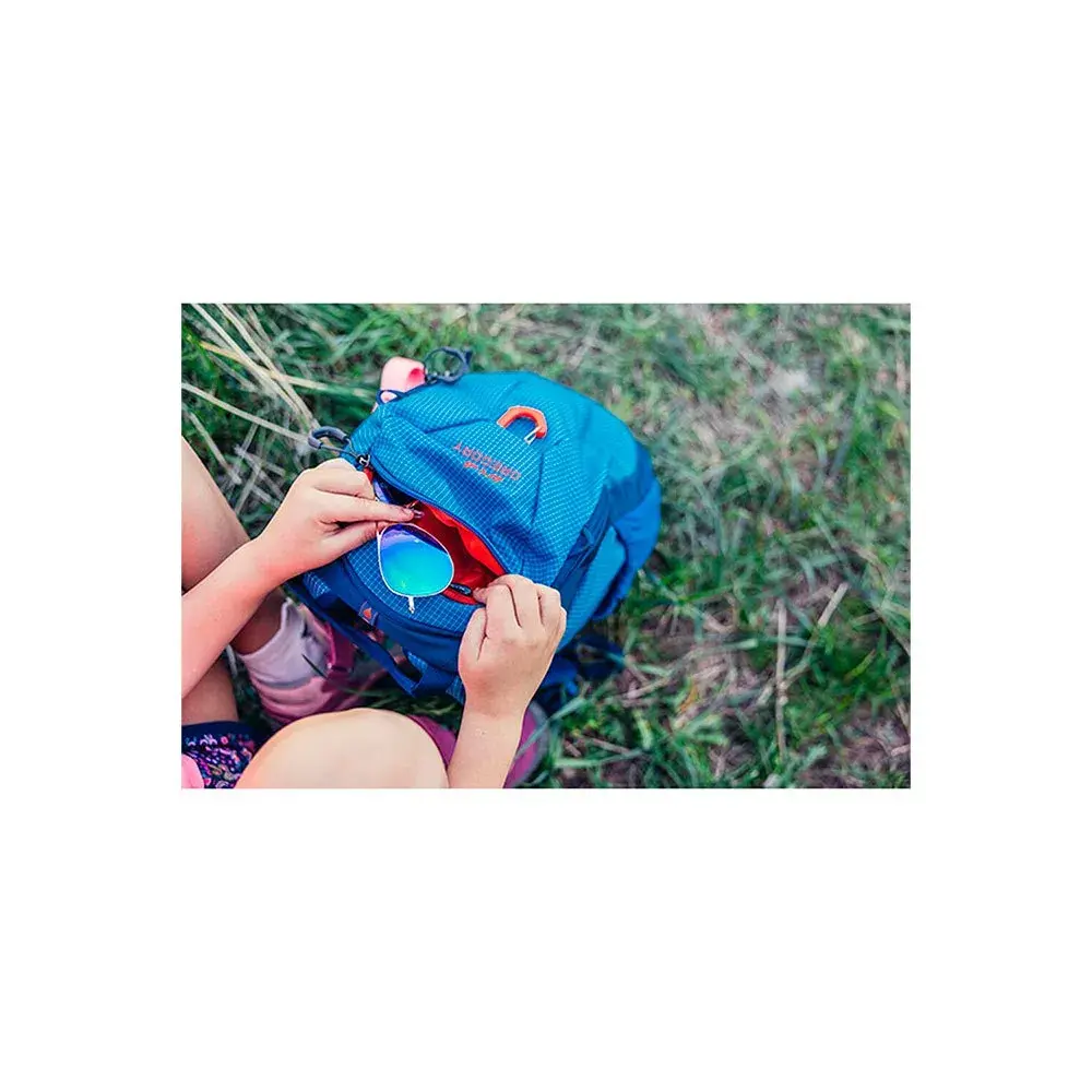 В комплекте с центральным карабином для крепления походных принадлежностей, верхним карманом на молнии с быстрым доступом и боковыми сетчатыми карманами для бутылок с водой.