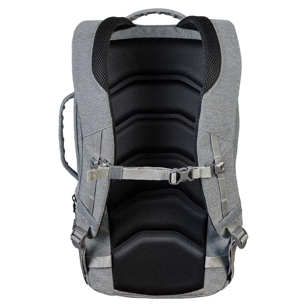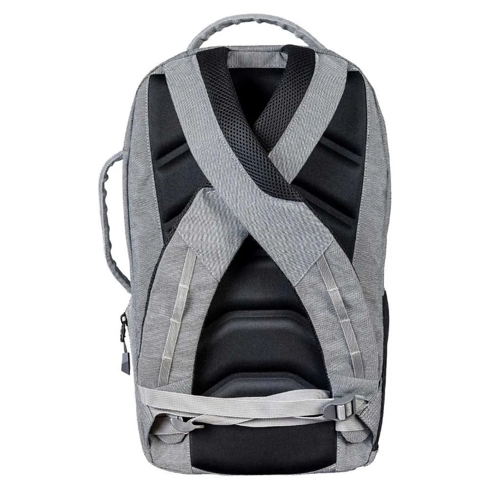 Однокамерный рюкзак, усиленная спинка, мягкие плечевые ремни, ремни внизу для крепления плечевых ремней к задней панели, нагрудный ремень, два боковых кармана, флисовый карман для мобильного телефона, мягкий карман для ноутбука, передний карман на молнии, карман с органайзером, закрытый крышкой, боковой карман на молнии, боковая ручка, можно носить как чемодан