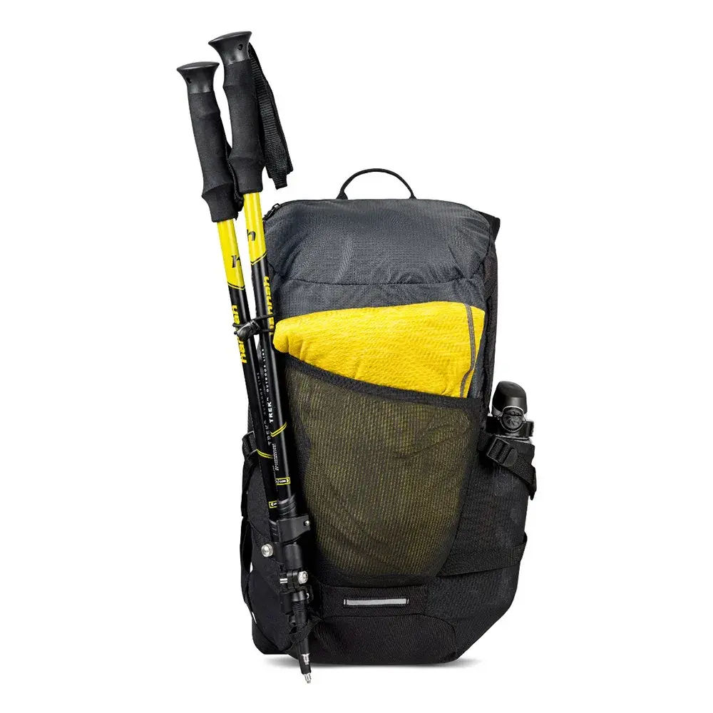 Боковые компрессионные ремни уменьшают объем рюкзака, в комплект входят ручки для треккинговых палок.