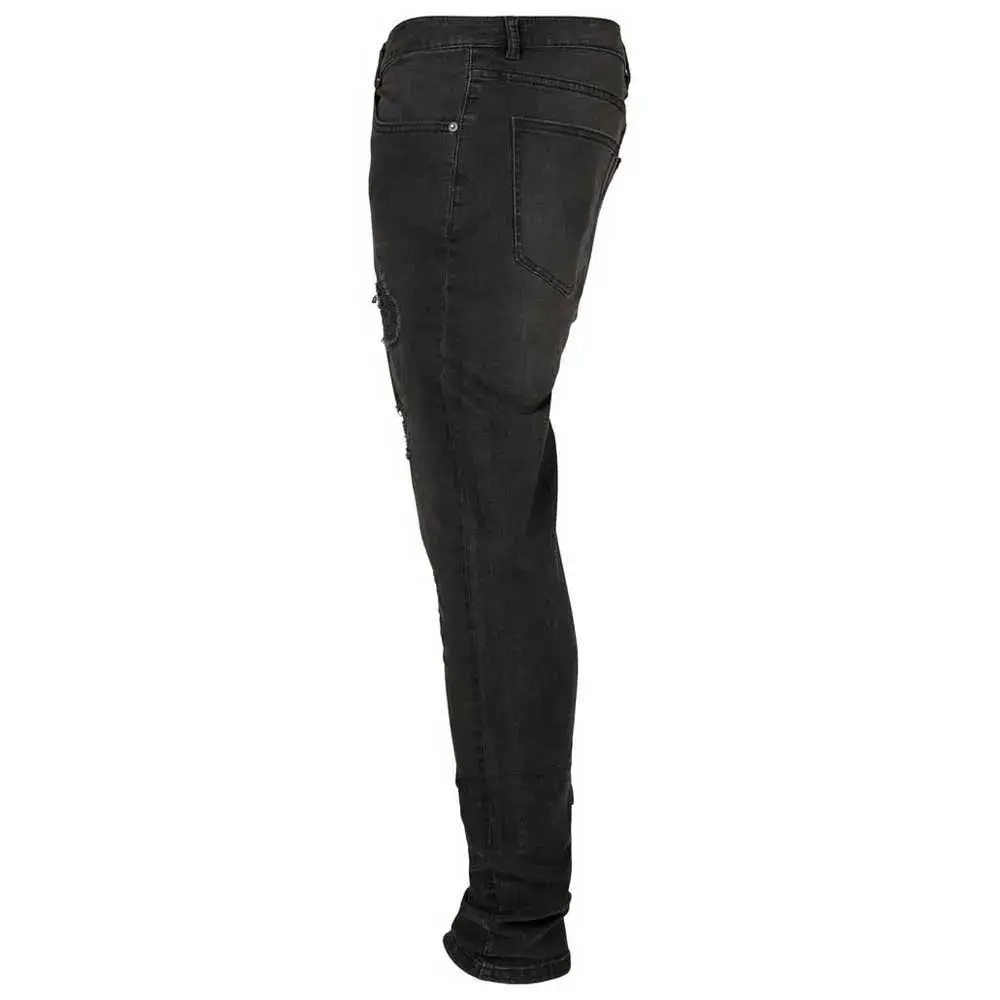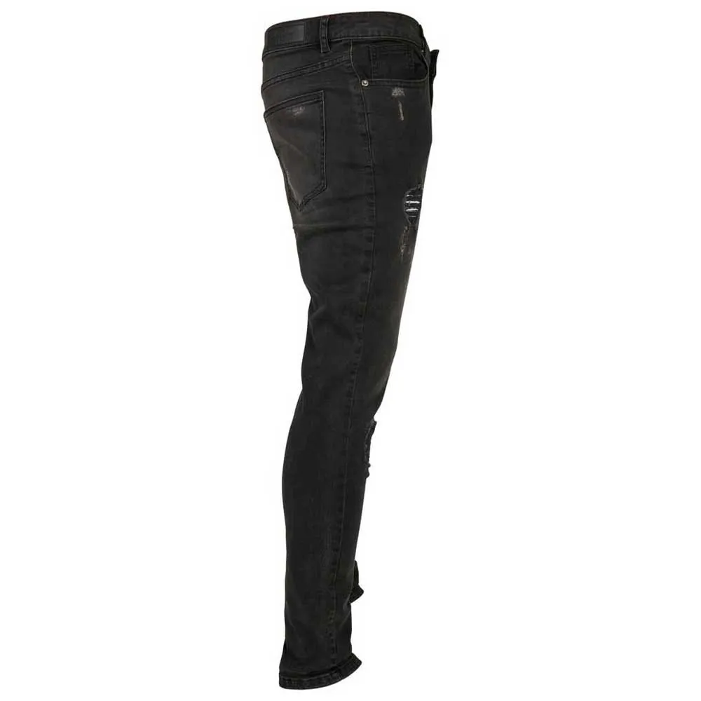 Эти современные и модные мужские джинсы отличаются модным облегающим кроем и многочисленными рваными элементами в области бедер, коленей и задних карманов. Вырезы и крой с пятью карманами гармонично дополняют образ. Джинсы выполнены из комфортного эластичного денима.