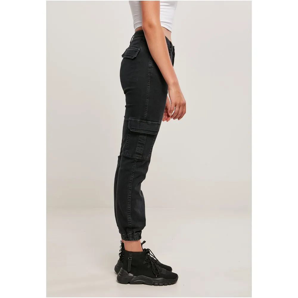 Пояс расположен высоко на талии, манжеты эластичные, а между ними расположены карманы-карго на бедрах, что определяет дизайн.