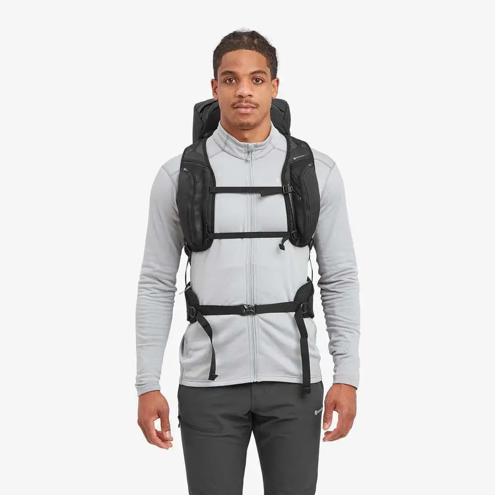 - Click and Go: Два смещенных от центра грудных ремня Montane Click and Go для безопасности.
