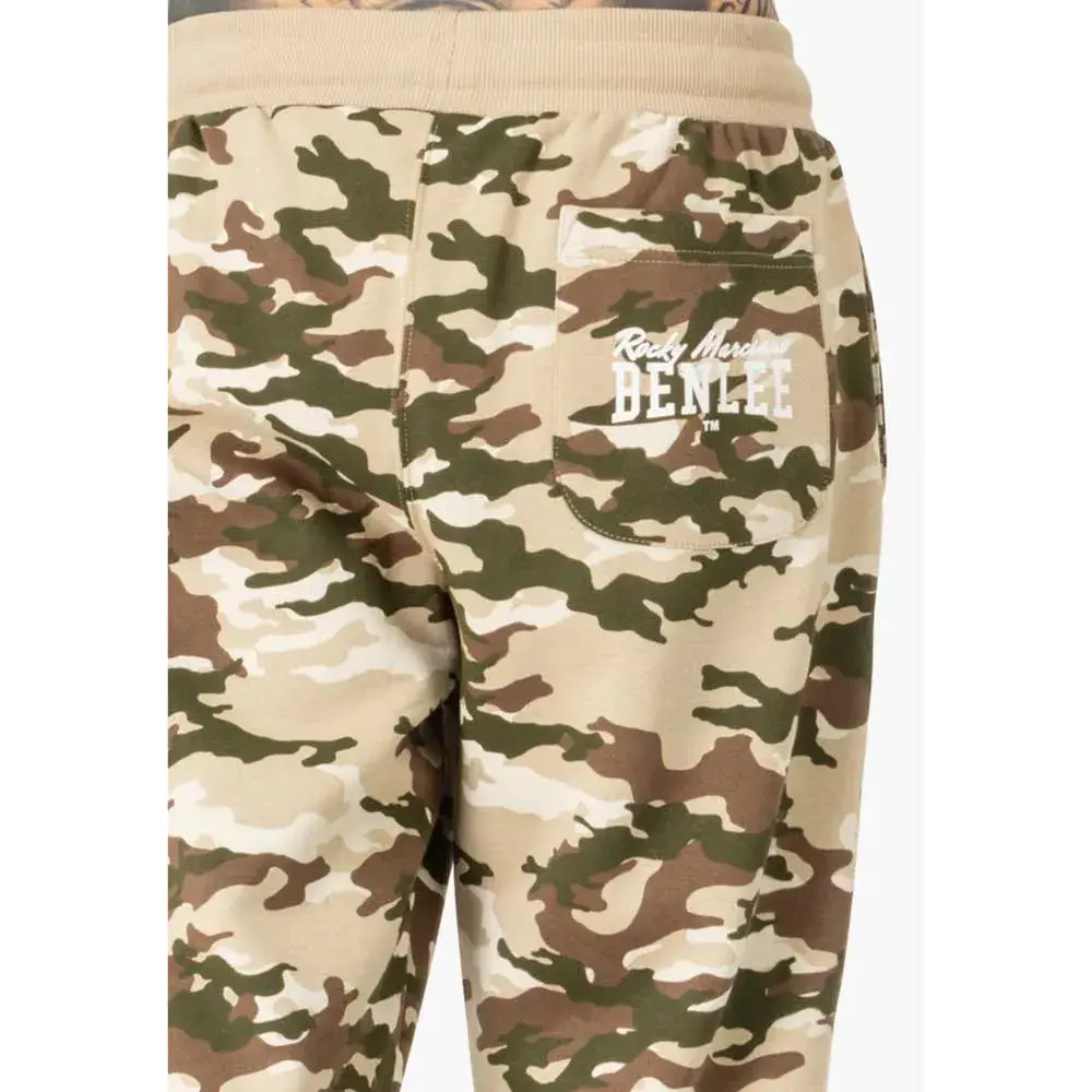 Камуфляжные спортивные брюки с объемной резиновой нашивкой на левом бедре. Два боковых кармана спереди и накладной карман с напечатанной надписью бренда сзади. Кроме того, эластичная манжета на бедрах регулируется встроенными шнурками.