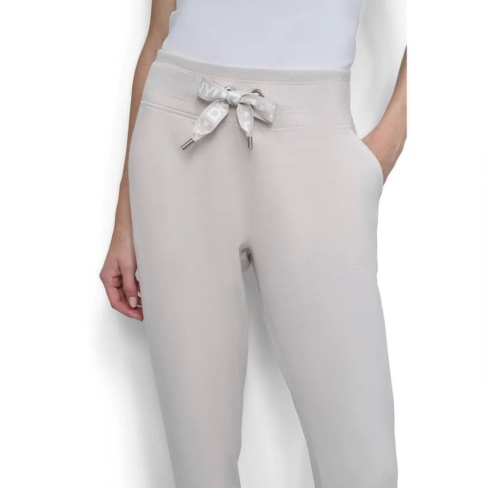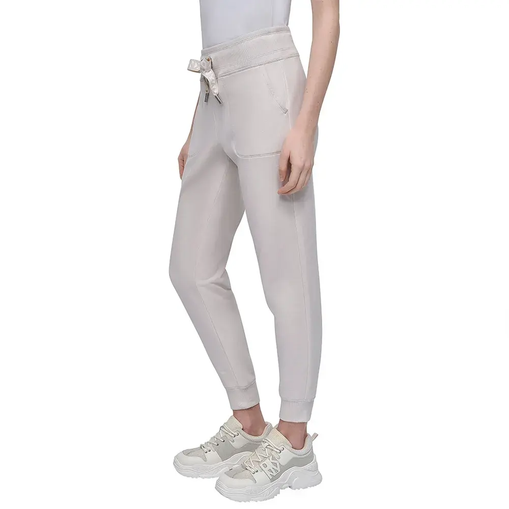 Спортивные брюки с закрытыми штанинами, завязками для регулирования талии и боковыми карманами.