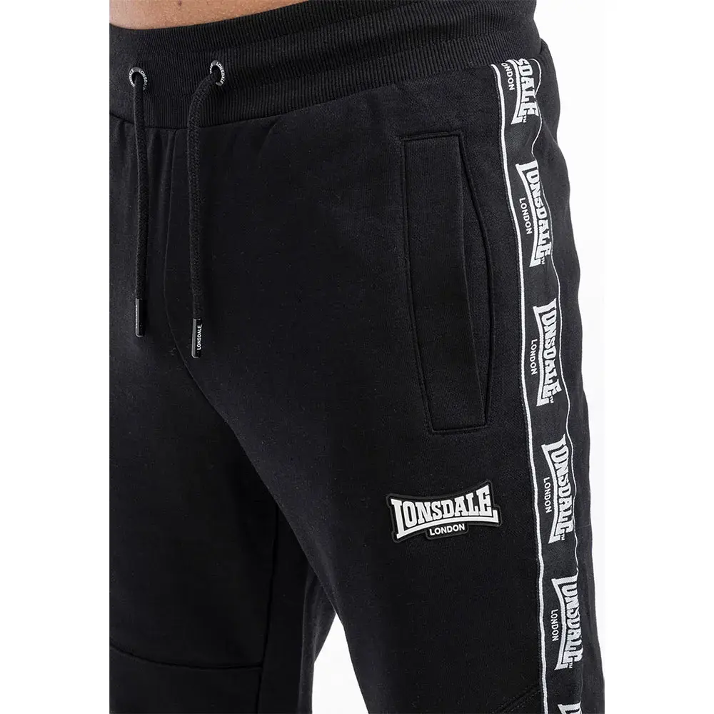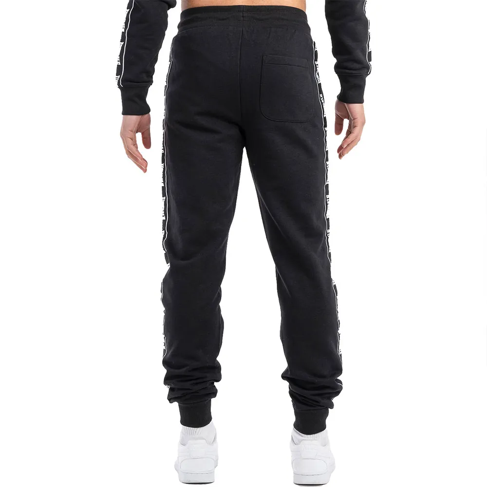Спортивные брюки с пришитыми логотипами по бокам и изысканными разделительными швами в области колен. На левом бедре небольшой резиновый 3D-логотип. Два кармана спереди и один накладной сзади. Эластичные манжеты на бедрах и брючинах.